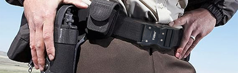 PTAKRQYDYIBJG حزام واجب تكتيكي 1.5 بوصة حزام شرطة مع مشبك سريع التحرير من النايلون الأسود حزام واجب إنفاذ القانون حزام قتالي أداة مساعدة للرجال من رجال الإطفاء العسكريين من الشرطة
