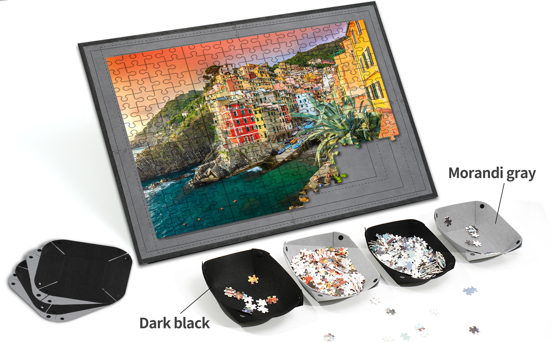 【حجم المنتج】 يبلغ مقاسه 28.5 × 21 بوصة وينطبق على معظم الألغاز التي يصل عددها إلى 1000 قطعة. وتم تكوينها أيضًا بأربعة لوحات تخزين، وقطع اللغز قبل التصنيف موضوعة في لوحات تخزين مختلفة.