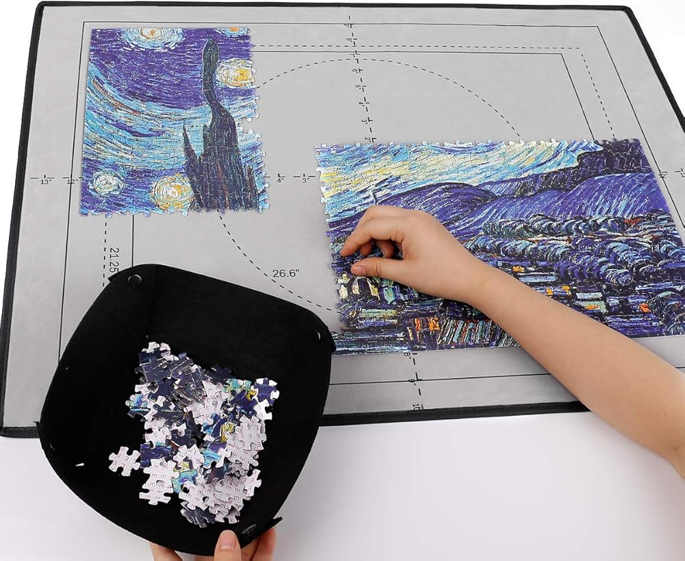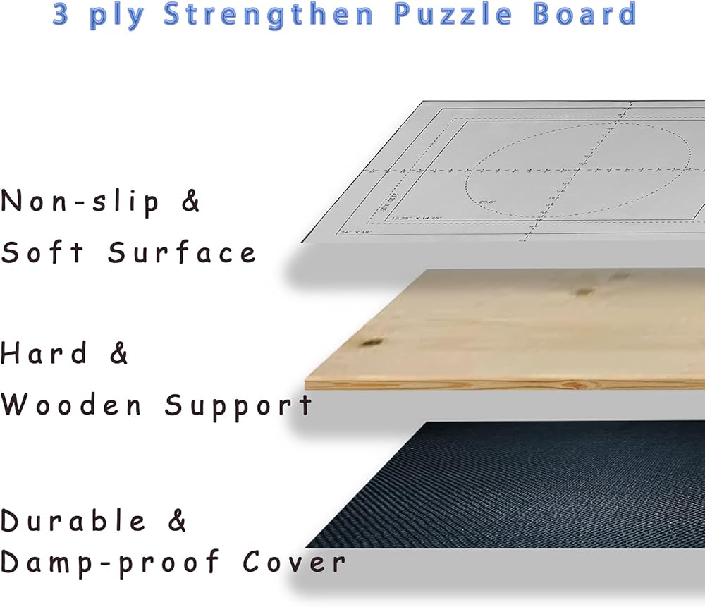 【مواد عالية الجودة】 لوحة الألغاز مصنوعة من نسيج الفانيلا والبوليستر عالي الجودة، وهو متين. الجانب الرمادي مغطى بالفانيلا ويتم وضع علامة على الحجم المرجعي للغز، والذي يمكن استخدامه للعب ألعاب الألغاز، بينما الجانب الآخر عبارة عن نسيج شبكي أسود، والذي يمكن أن يلعب دورًا غير قابل للانزلاق.