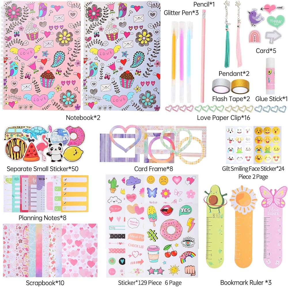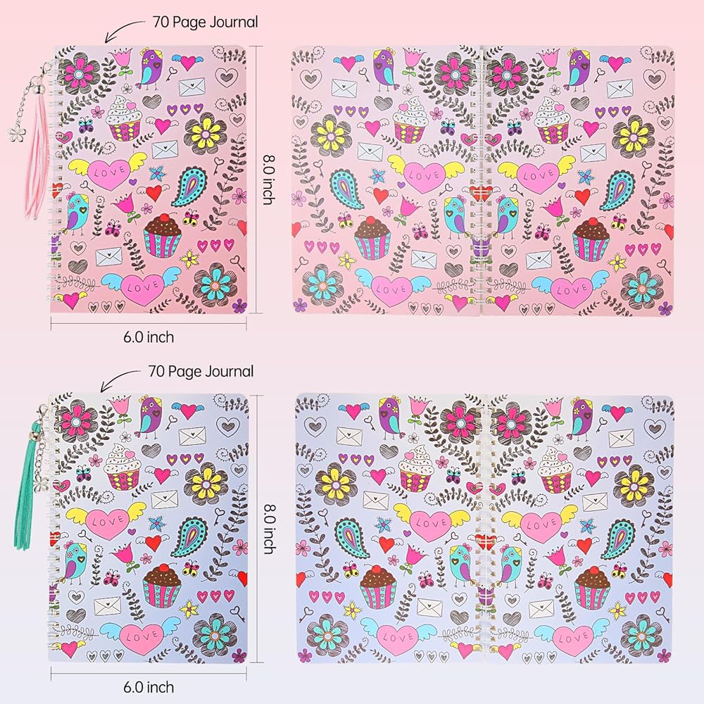 مجموعة مكونة من قطعتين من المجلات التي تصنعها بنفسك، مجلات الأطفال للفتيات من عمر 8 9 10 11 12 13 14 عامًا، هدايا عيد ميلاد مثيرة للاهتمام للفتيات، مجموعة الفنون والحرف اليدوية وسجل القصاصات والمذكرات