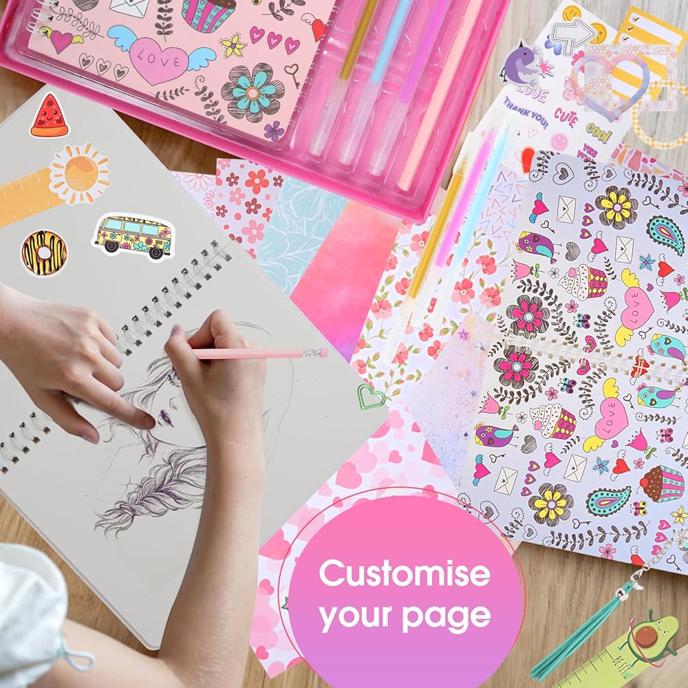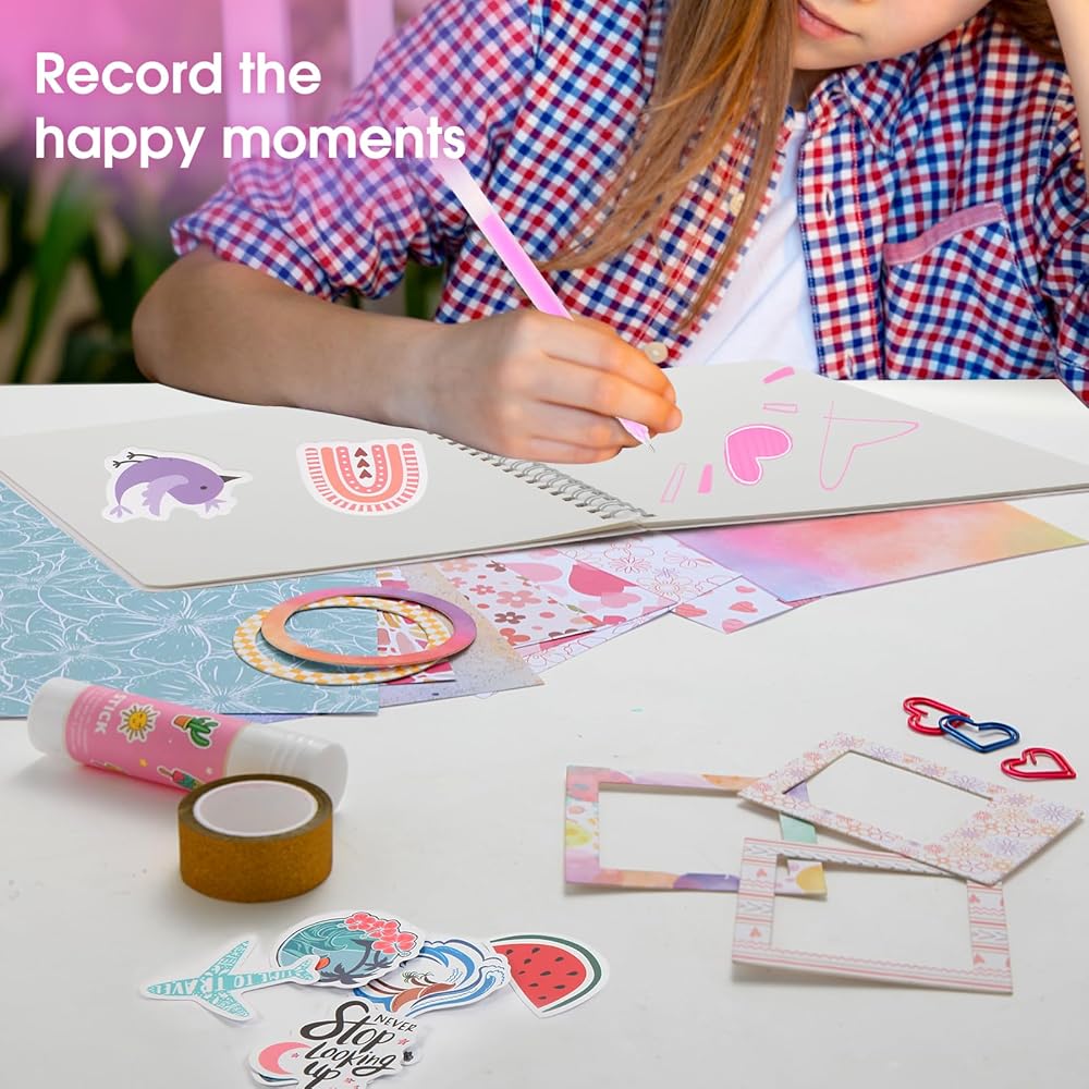 【إبداع شرارة】مع مجموعة متنوعة من الأوراق ذات الأنماط العصرية وإطارات الصور والشريط اللامع، يمكن للفتيات تزيين مجموعتين من دفاتر الملاحظات الخاصة بهما بشكل فريد، وإضافة الأشكال والحدود والإشارات المرجعية والملصقات والمشابك الورقية لعمل تصميمات جميلة ومخصصة لهن. سأحب. إنها مثالية للتعبير عن الذات والاستكشاف.