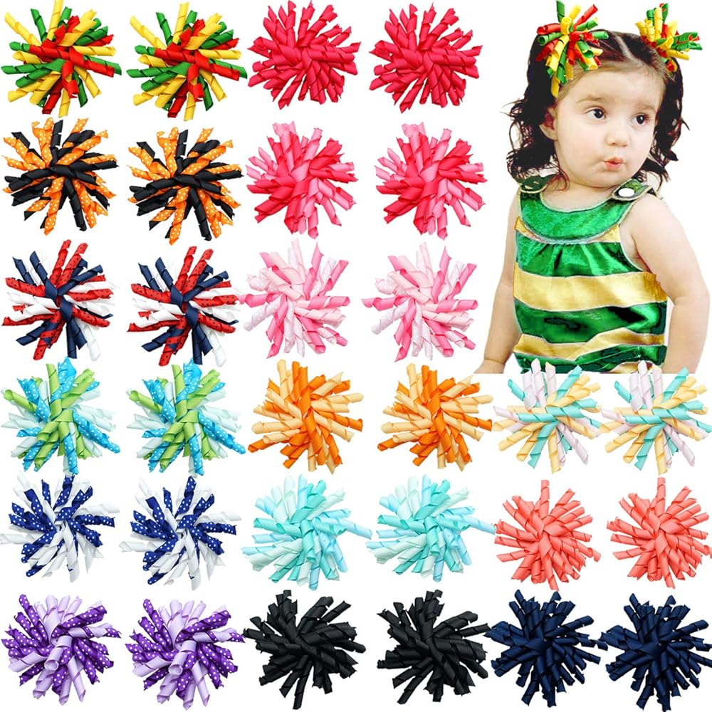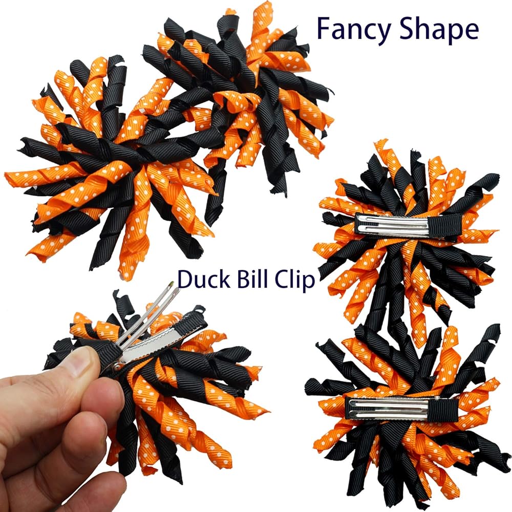CÉLLOT 30 قطعة من إكسسوارات الشعر لعيد الهالوين وعيد الميلاد للفتيات وشريط من الحرير المضلع وأقواس دوامة مجعدة ومشابك التمساح للفتيات الصغيرات والأطفال الصغار