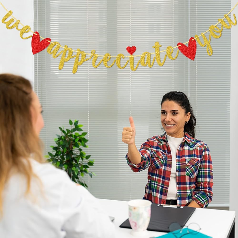 أظهر تقديرك مع هذه اللافتة المشرقة والحديثة "نحن نقدر لك"! احتفل بموظفيك، وعملائك، ومدرسيك، ومدربك، ورئيسك، وأطباءك، وممرضاتك، وقساوستك، وما إلى ذلك على كل عملهم الشاق!