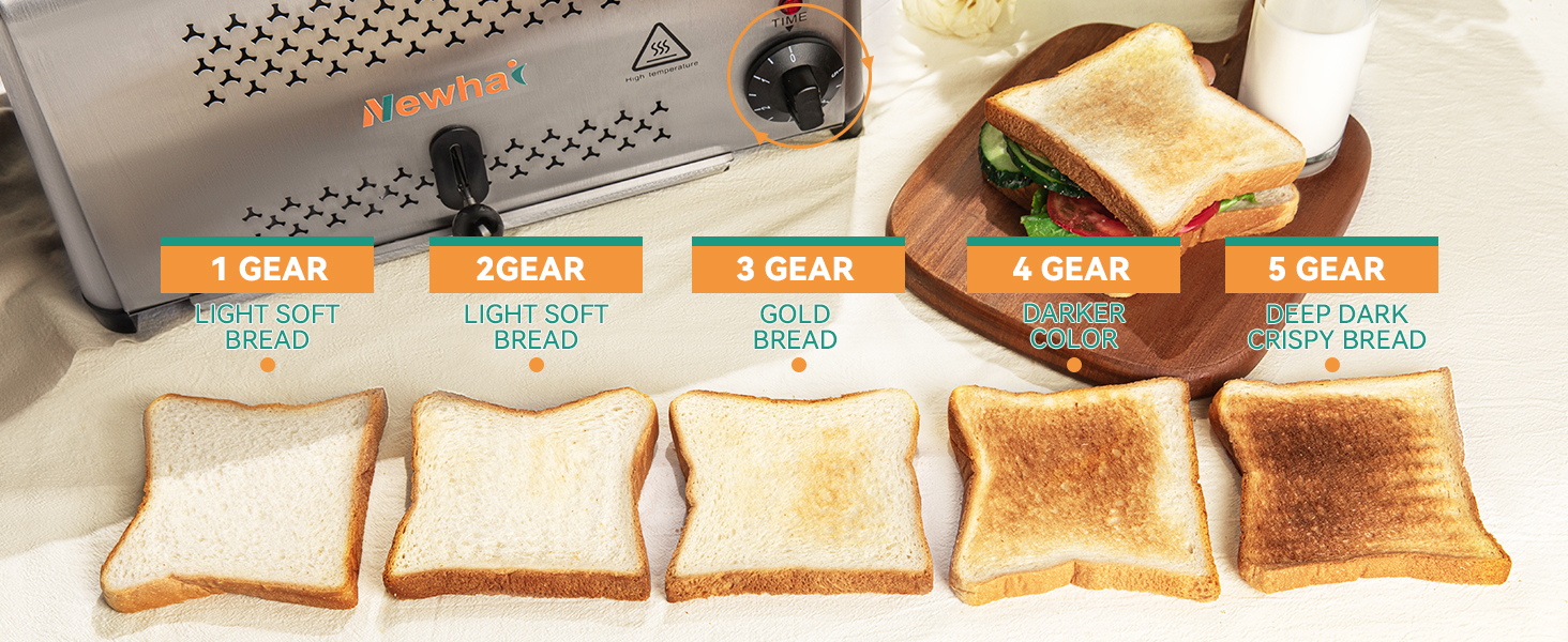 5 إعدادات لتظليل الخبز المحمص --- استمتع بشريحة الخبز المحمص المثالية في كل مرة مع خيارات التحكم في درجة الحرارة الخمسة في محمصة الخبز الخاصة بنا. احصل على المستوى المطلوب من التحميص، من اللون الذهبي الفاتح إلى القرمشة الداكنة العميقة، ومن القوام الناعم إلى المقرمش. ما عليك سوى تحديد الترس المطلوب، والذي يتراوح من 1 (فاتح) إلى 5 (داكن)، وفقًا لتفضيلاتك. اكتشف إمكانيات لا حصر لها لأنواع الخبز والطبقة المختلفة، التي تتنوع في الصلصات والنكهات، مع خيارات التحميص القابلة للتخصيص.