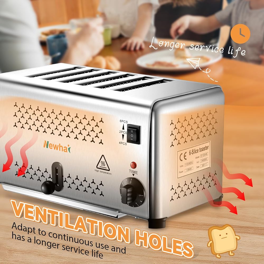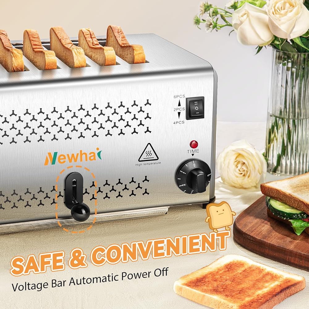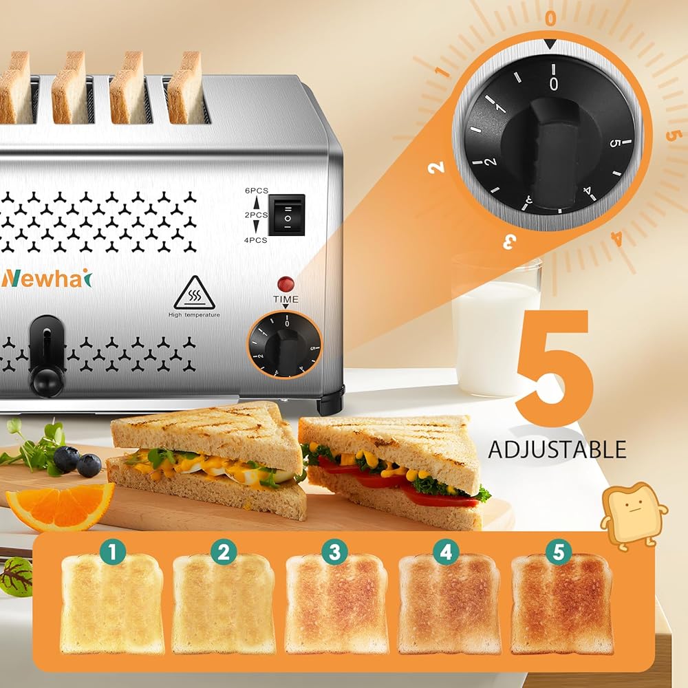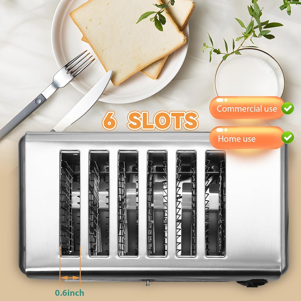 قوية وعالية الكفاءة --- محمصة الخبز ذات 6 شرائح بقدرة 2500 واط قادرة على تحميص ست شرائح في وقت واحد، مما يوفر قدرات تحميص قوية وفعالة. يتيح لك مخرج الطاقة العالية الخبز السريع، مما يسمح لك بإعداد وجبة إفطار لذيذة في دقائق معدودة. بالإضافة إلى ذلك، تأتي المحمصة مزودة بمنظم حرارة للاستخدام المتواصل، مما يعني أنك لن تقلق بشأن ارتفاع درجة حرارة الجهاز.