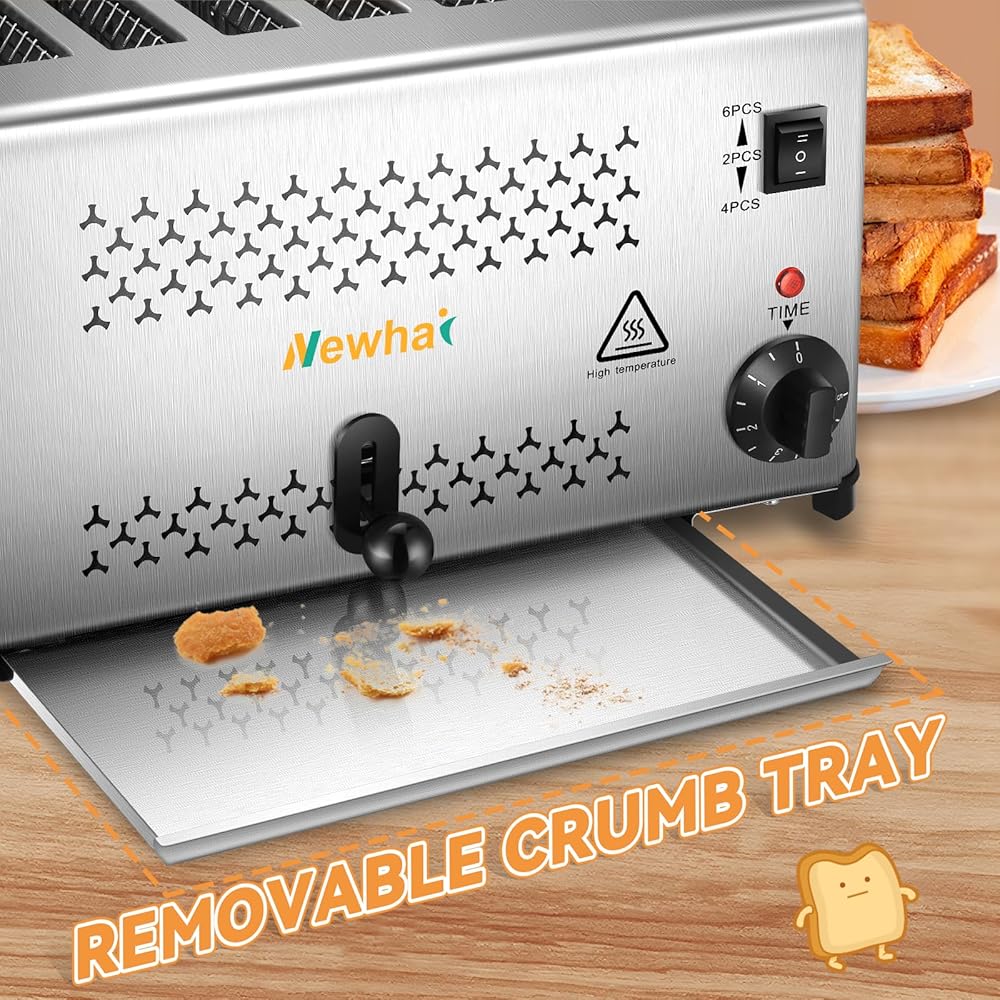 سهلة التنظيف --- تتميز محمصة الخبز ذات الدرجة التجارية بصينية فتات مريحة قابلة للسحب وقابلة للإزالة موجودة في الأسفل، ومصممة لجمع فتات الخبز. مع هذه الميزة، يصبح التنظيف سهلا حيث يمكنك ببساطة إزالة الدرج والتخلص من الفتات. لا مزيد من القلق بشأن الفتات الفوضوية المنتشرة حول مطبخك! صينية فتات الخبز العملية الخاصة بنا تجعل التنظيف فعالاً وخاليًا من المتاعب، مما يضمن تجربة إفطار أكثر متعة وصحية.