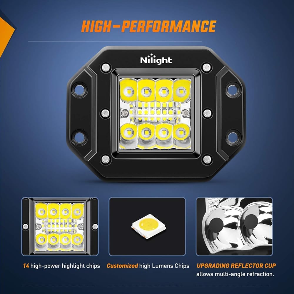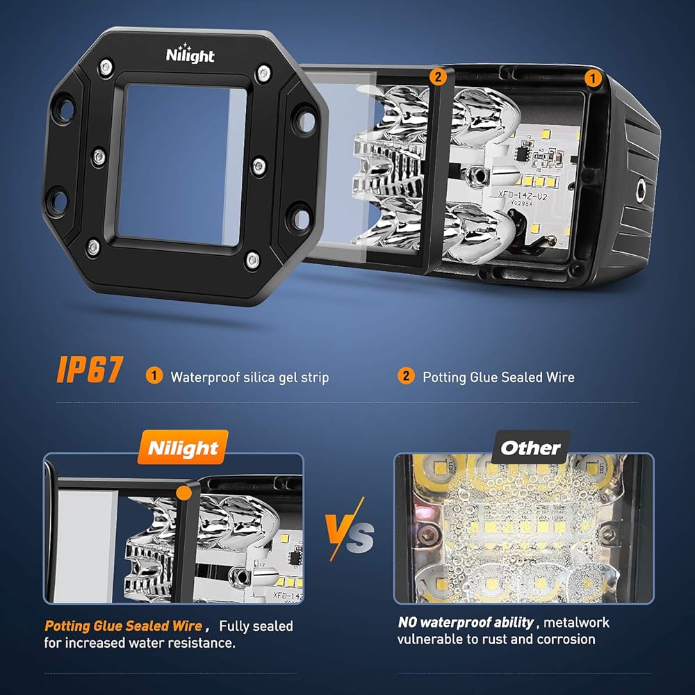 • Excellent Brightness: With added led quantities, triple row design, and combination of flood &spot beam, the flush mount light pods emits a better and perfect 7800LM light to light up the entire road ahead of you, excellent visibility, no more afraid of darkness