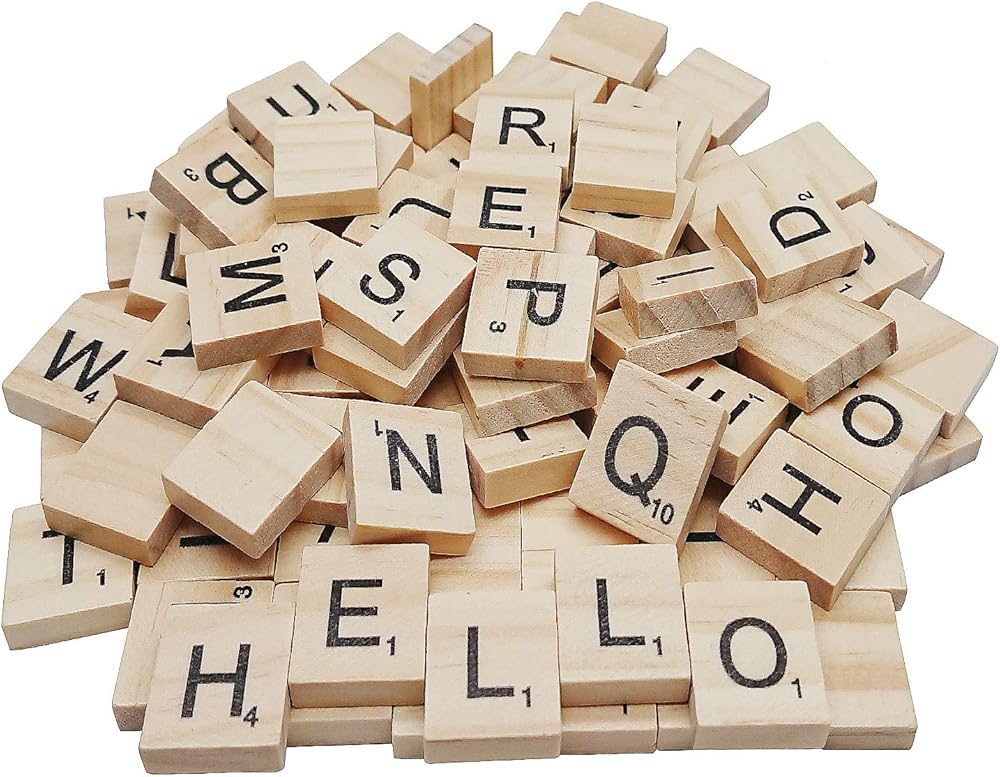 Package include: 2 Full Sets of 100 Letters. Each set of 100 uses the standard tile distribution for the game: A-9, B-2, C-2, D-4, E-12, F-2, G-3, H-2, I-9, J-1, K-1, L-4, M-2, N-6, O-8, P-2, Q-1, R-6, S-4, T-6, U-4, V-2, W-2, X-1, Y-2, Z-1, and 2 Blanks.
