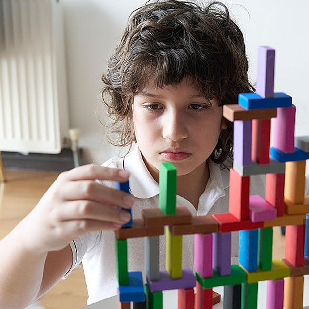 Creative learning toy - The Dominoes Set can improve children's operational ability as well as exercise the baby's structural space imagination. Colorful and beautiful appearance can stimulate their brain and thought development. It can develop children's cognitive development of color, cultivate kid's creativity.
