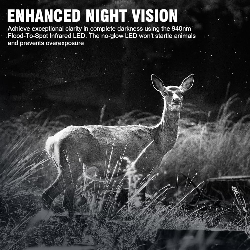 • الزناد السريع: التقط الحياة البرية على الفور مع وقت تشغيل يبلغ 0.2 ثانية يتم تنشيطه بواسطة مستشعر PIR النشط. لا تفوت أبدًا اللحظات المثيرة - كاميرا صيد موثوقة تناسبك.