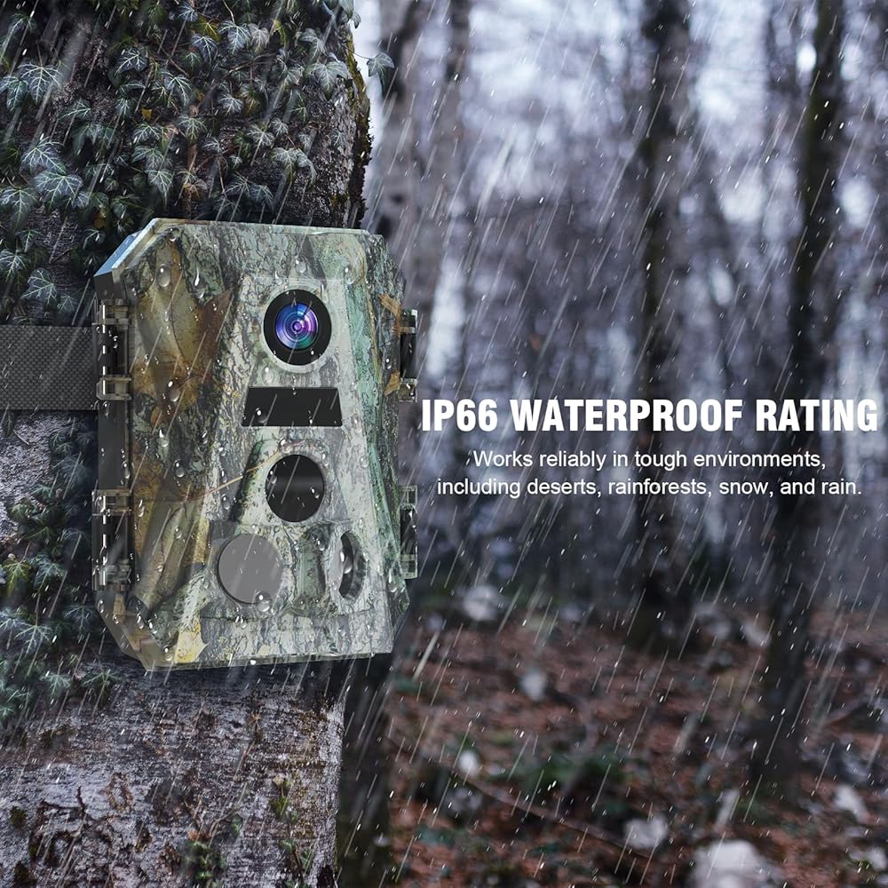 • مقاومة للماء وموفرة للطاقة: استفد من نظام استهلاك منخفض للطاقة، حيث تدوم بطاريات AA 4x المتوفرة لأكثر من 6 أشهر في أوضاع الصورة، مما يقلل الحاجة إلى تغيير البطارية بشكل متكرر. تم تصميمه ليتوافق مع معايير IP66 ومصنوع من مواد عالية الجودة، ويخضع لاختبارات جودة صارمة لضمان التشغيل العادي من -22 درجة فهرنهايت إلى 158 درجة فهرنهايت. مثالية للبيئات الصعبة مثل الصحاري والغابات المطيرة والثلوج والمطر