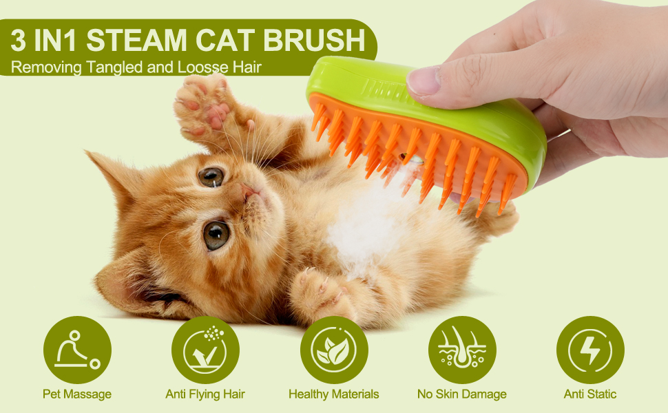 【فرشاة القطط البخارية】: توفر فرشاة القطط ثلاثة في واحد هذه حلاً فعالاً للعناية بحيوانك الأليف. يمكنه حل مشكلة الشعر المتشابك بشكل فعال، والتنظيف بالبخار للحيوانات الأليفة، وتدليك الحيوانات الأليفة، مما يجعلها أداة يجب اقتناؤها لأصحاب الحيوانات الأليفة. سواء كان لديك قطة أو كلبًا، فإن فرشاة القطط البخارية هذه مصممة للحفاظ على فراء صديقك المكسو بالفراء صحيًا ولامعًا. استمتع بمساحة معيشة نظيفة وخالية من الشعر بشكل لا يصدق!