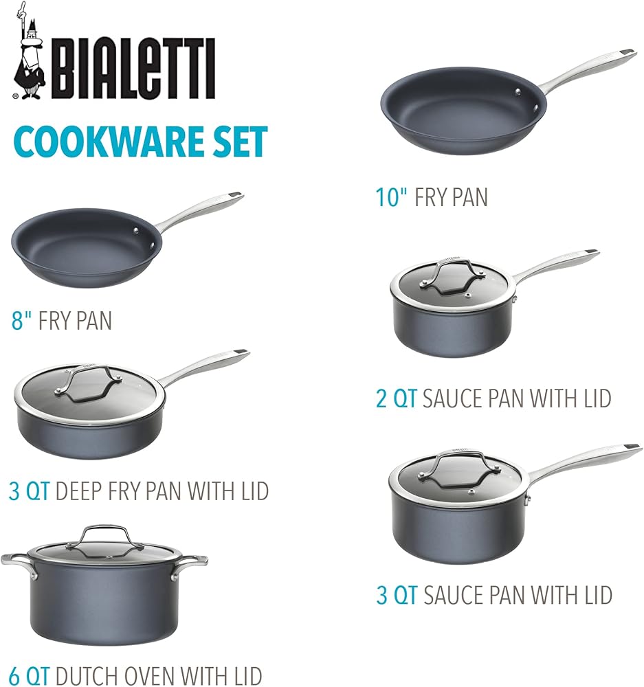 مقلاة بياليتي، طقم أواني طهي من الياقوت 10 قطع، رمادي