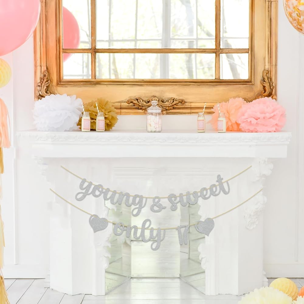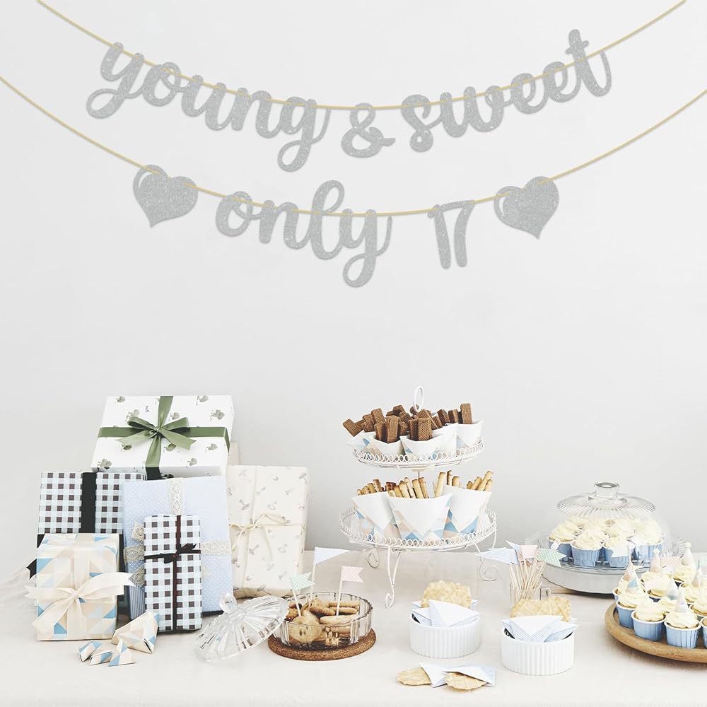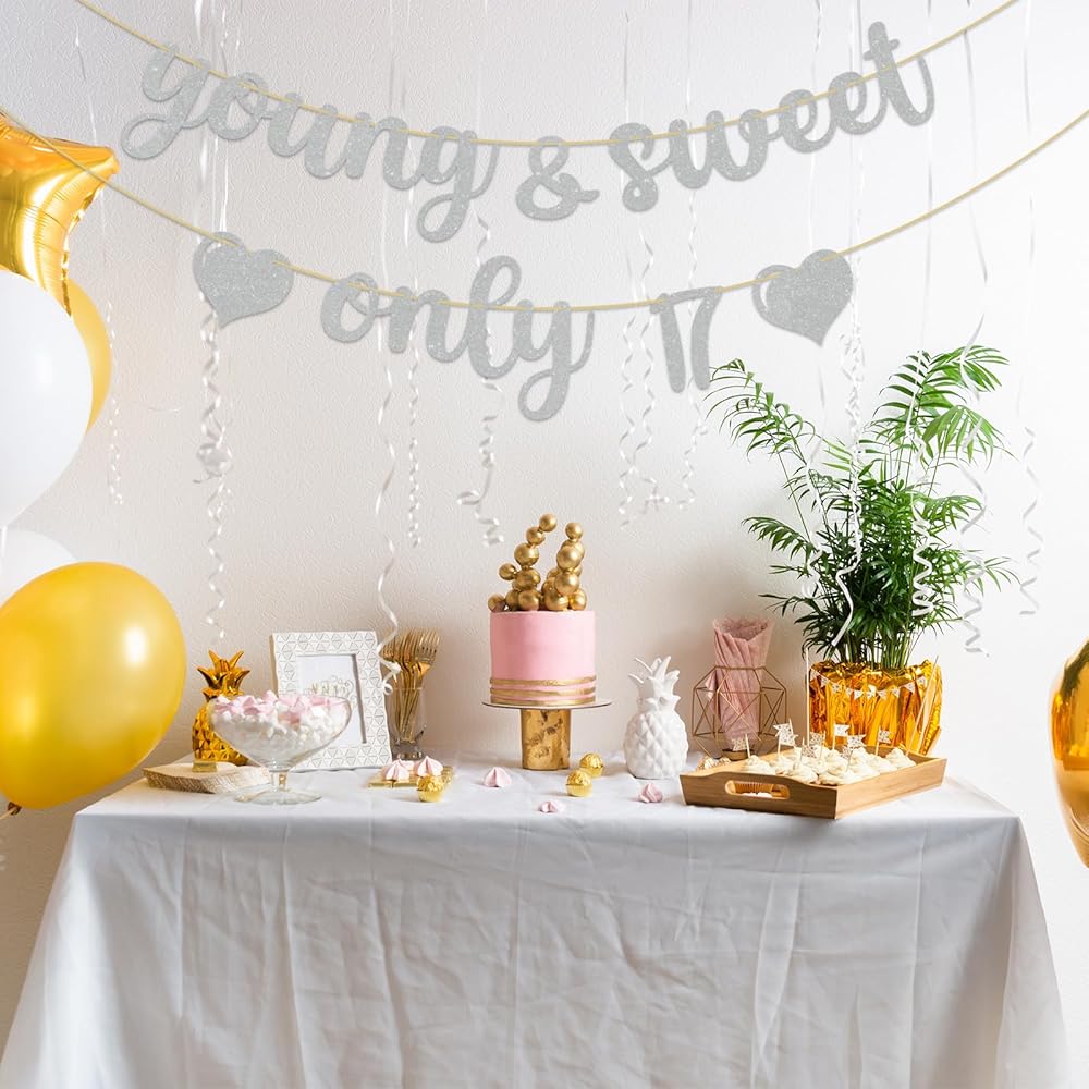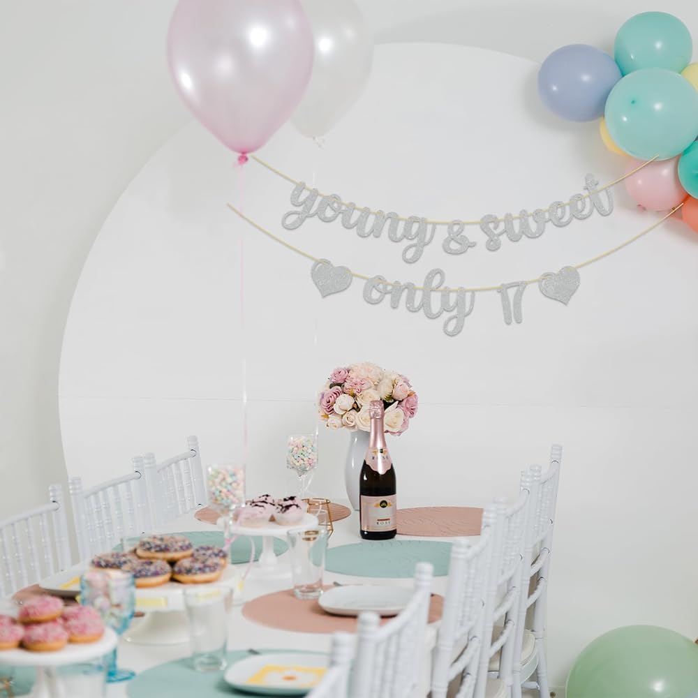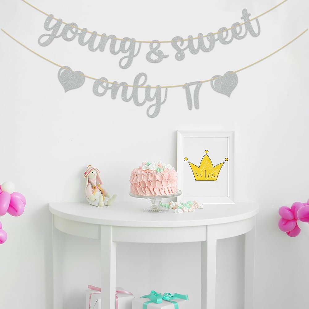🎈 شابة وحلوة، فقط سبعة عشر: نقدم لك لافتة "Young & Sweet Only 17" المصممة بعناية، مما يضيف لمسة احتفالية إلى سن السابعة عشرة! كل حرف ينضح بحيوية الشباب، مما يجعل احتفالك مميزًا للغاية.