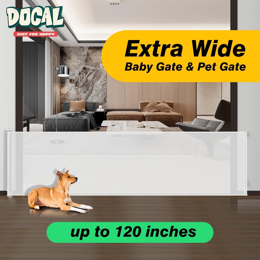 بوابة أطفال بعرض إضافي 120 بوصة - بوابات الأطفال القابلة للسحب هذه تناسب الفتحات التي يصل عرضها إلى 120 بوصة وطولها 35 بوصة ويمكن تعديلها لتناسب فتحاتك وفقًا لاحتياجاتك. مناسبة للأطفال الرضع والكلاب.