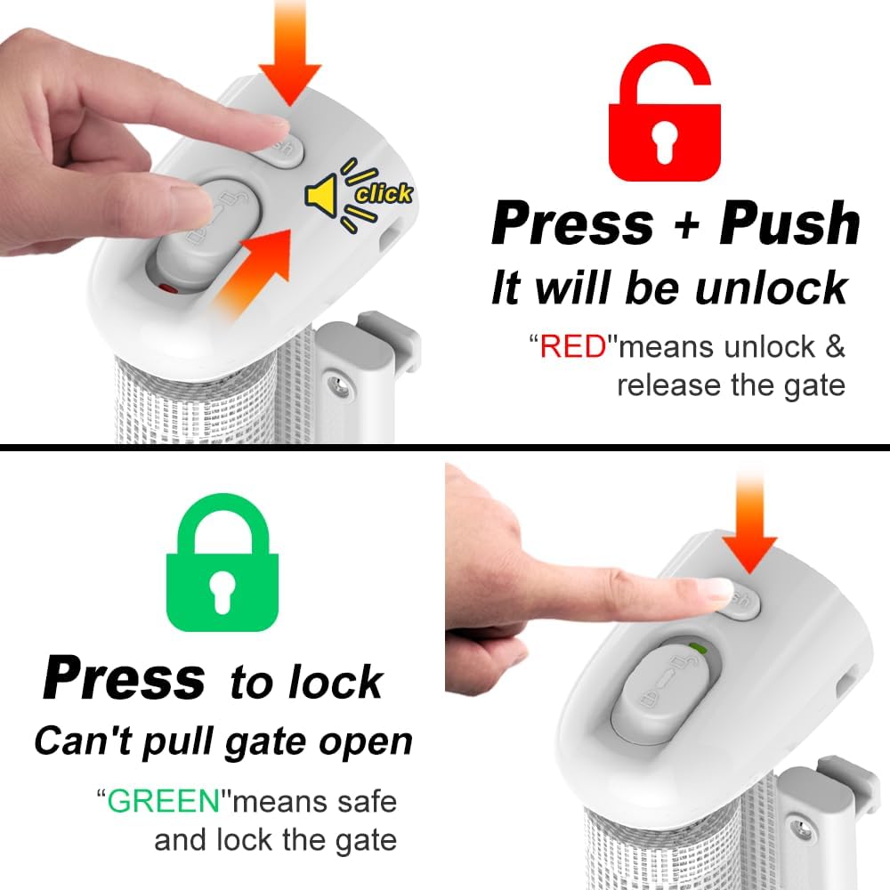 تشغيل بيد واحدة - يمكن لبوابة الأطفال الطويلة جدًا فتح وإغلاق البوابة بسهولة بيد واحدة أثناء حمل الطفل. من السهل فتحها للبالغين، ولكنها صعبة للأطفال.