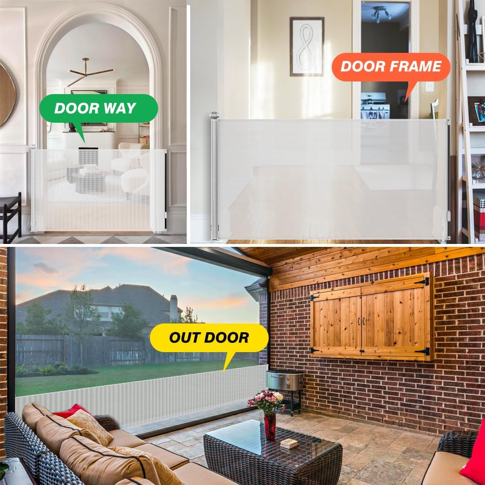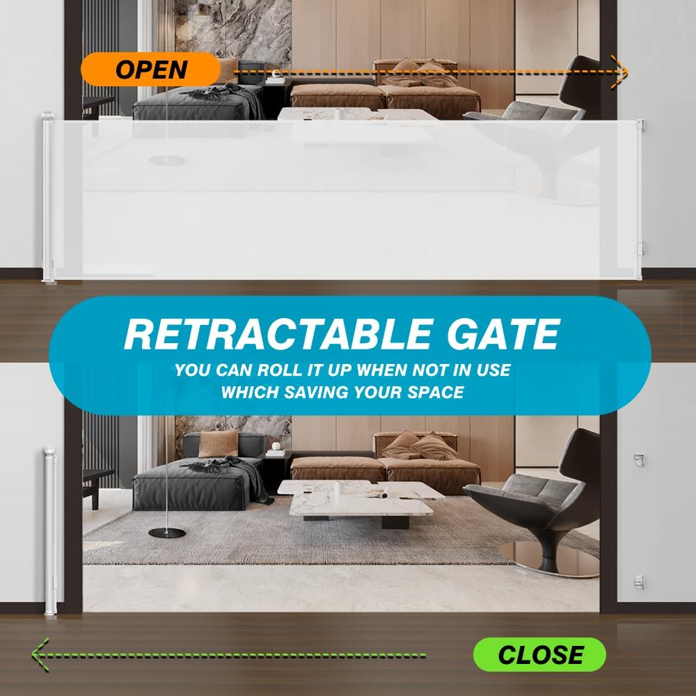 بوابة قابلة للسحب - يمكنك لفها عند عدم الاستخدام، مما يوفر المساحة الخاصة بك. على عكس قضبان البوابة الحديدية، لا تحتوي هذه البوابة الجديدة القابلة للسحب على قضبان سفلية - لذلك لا يوجد خطر التعثر. يسهل مرور الأطفال والكراسي المتحركة، كما أن التصميم الأنيق يتناسب بشكل جيد مع نمط منزلك. إنه فعال لمنع أطفالك من دخول الأماكن الخطرة.