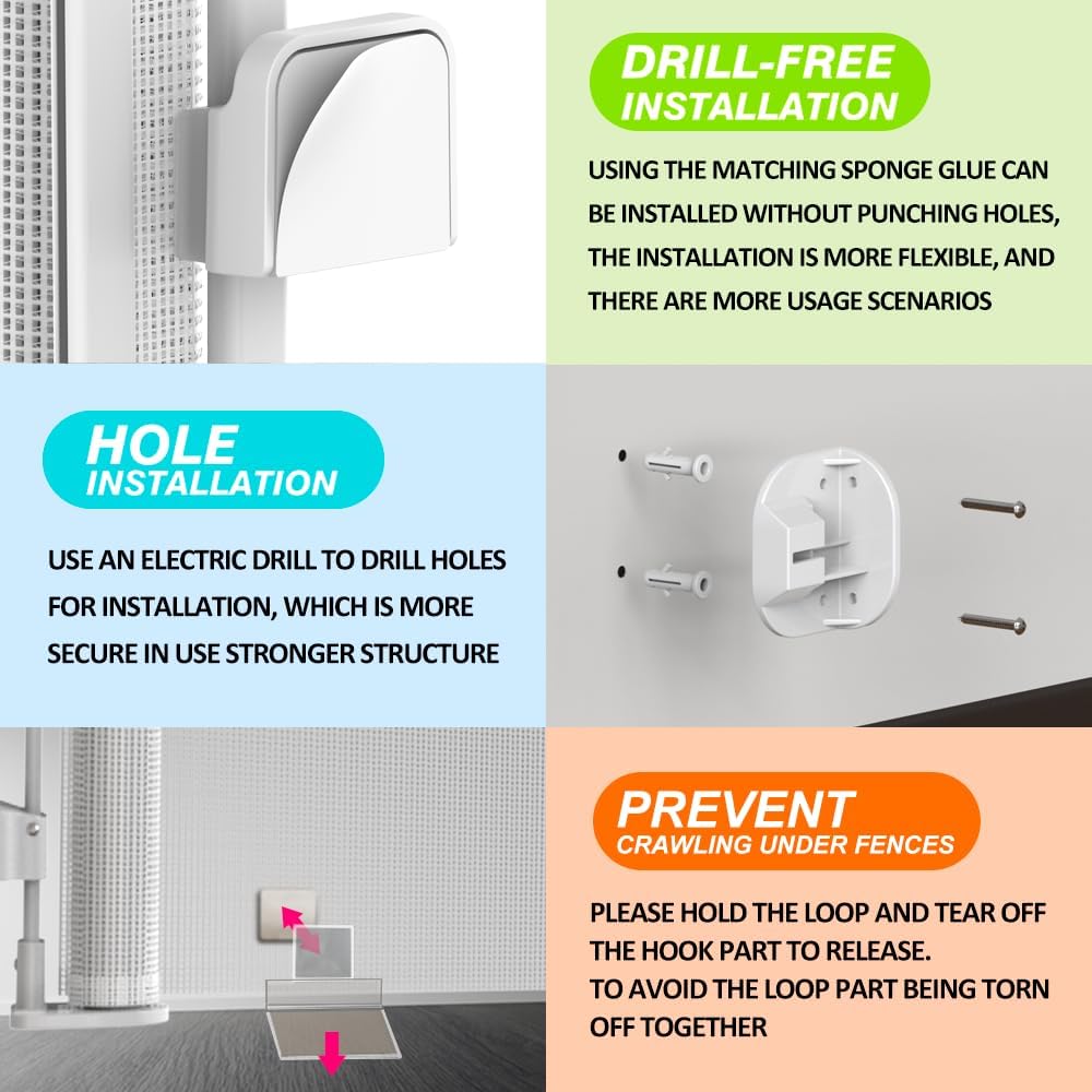 مناسبة تمامًا للأماكن الداخلية والخارجية - يمكن استخدام بوابات الأطفال الطويلة في الداخل والخارج على حد سواء في الداخل والخارج، مثل المطابخ المفتوحة، وفي الجزء السفلي من السلالم، والمداخل، والأسطح وما إلى ذلك. بوابات الأطفال واسعة جدًا تعمل كبوابة شبكية للأطفال وبوابة أطفال بوابة شبكية للكلاب لتوفير بيئة آمنة للعب.