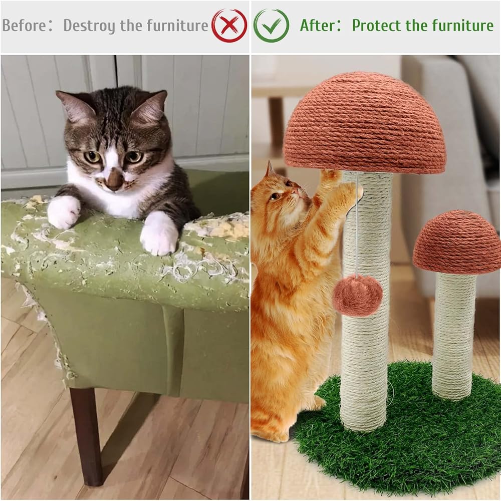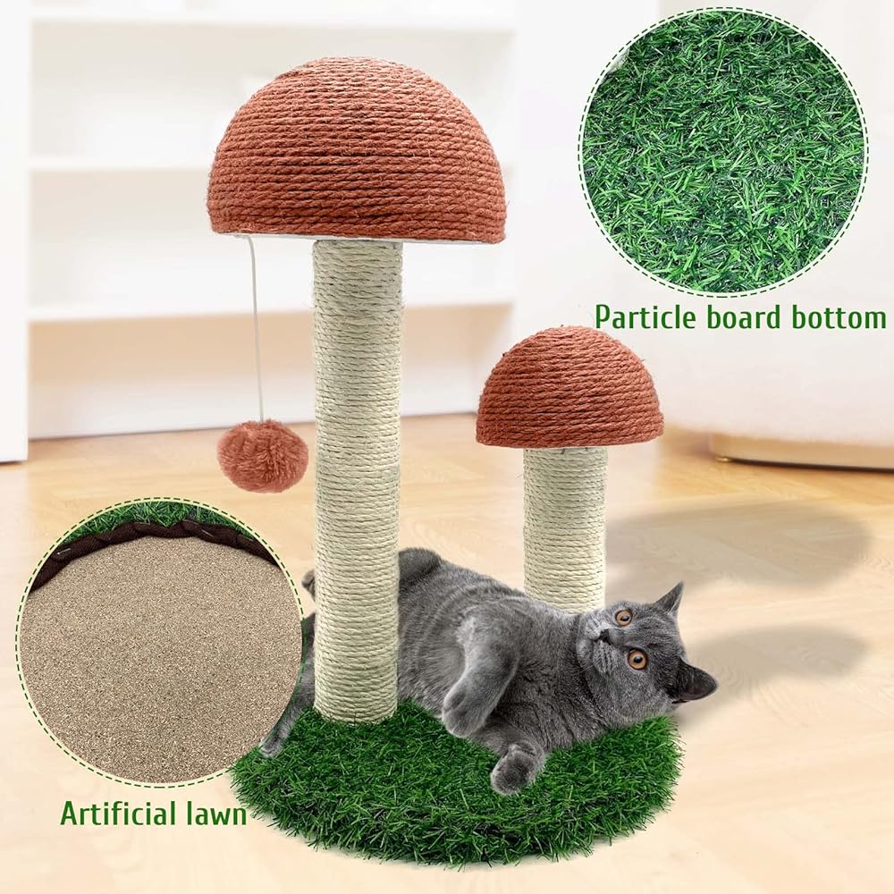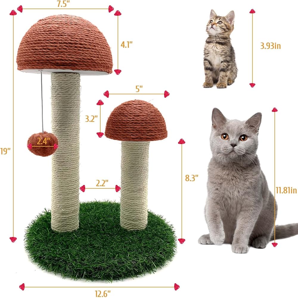 • 【خدش القطط على شكل فطر】لا يمكن لتصميم الفطر أن يجذب انتباه القطط بسهولة فحسب، بل يحفز أيضًا اهتمام القطط بالتسلق واللعب، ويصبح متنزهًا ترفيهيًا. 2 عمود خدش للفطر بارتفاعات مختلفة، 8.3 بوصة و13.6 بوصة، لتلبية احتياجات التسلق المختلفة للقطط. يمكن أيضًا استخدام أعمدة الخدش اللطيفة كديكور داخلي، حيث تتضمن ديكورًا عصريًا لإضفاء الحيوية على الغرفة.