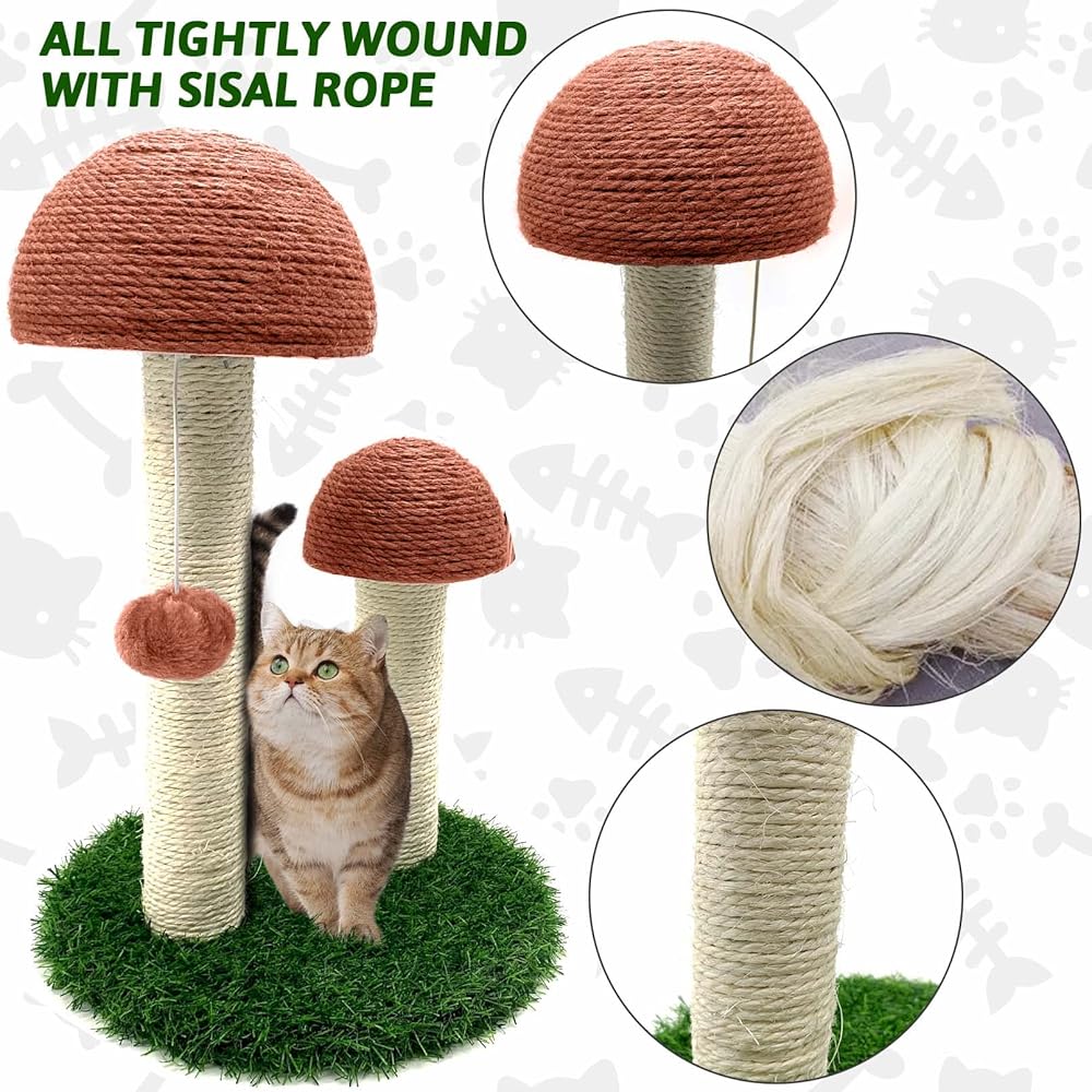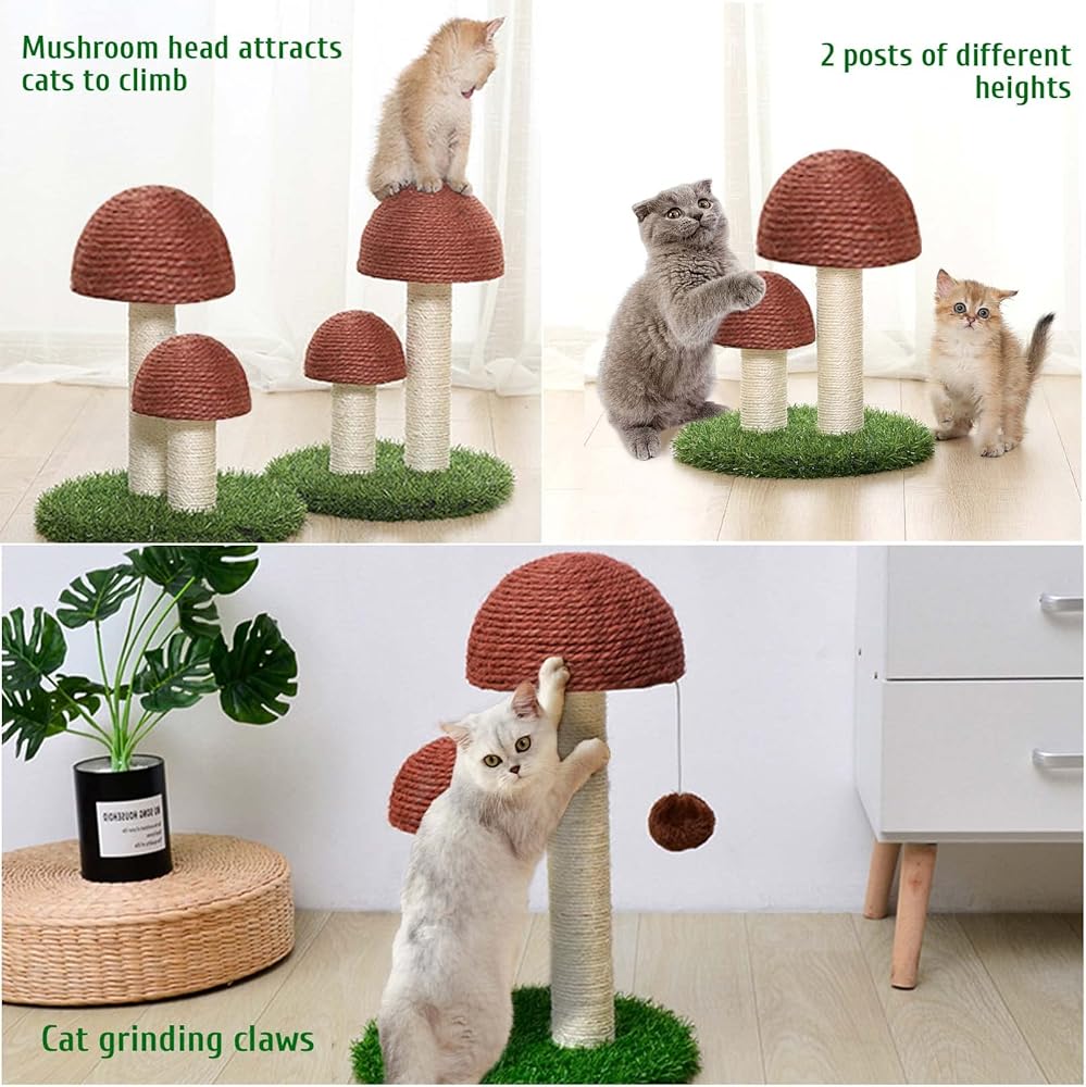 BNOSDM عمود خدش للقطط على شكل فطر مع قطبين للخدش من السيزال، لعبة تفاعلية للحيوانات الأليفة، شجرة تسلق للقطط الصغيرة في الأماكن المغلقة، والقطط الصغيرة (القهوة)