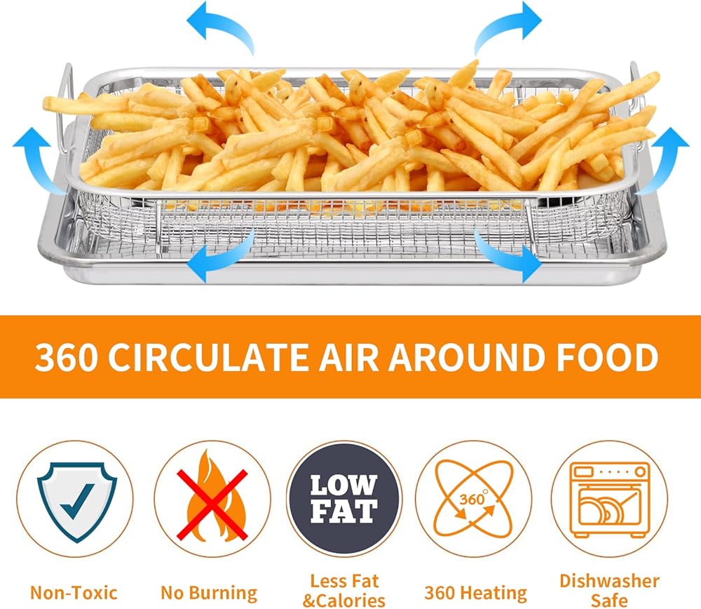 غير سامة----آمنة للاستخدام في غسالة الأطباق، سلة المقلاة الهوائية هذه للفرن الحراري مصنوعة من مواد عالية الجودة ومتينة ومن الدرجة الغذائية وغير سامة ومقاومة للحرارة 304 من الفولاذ المقاوم للصدأ.