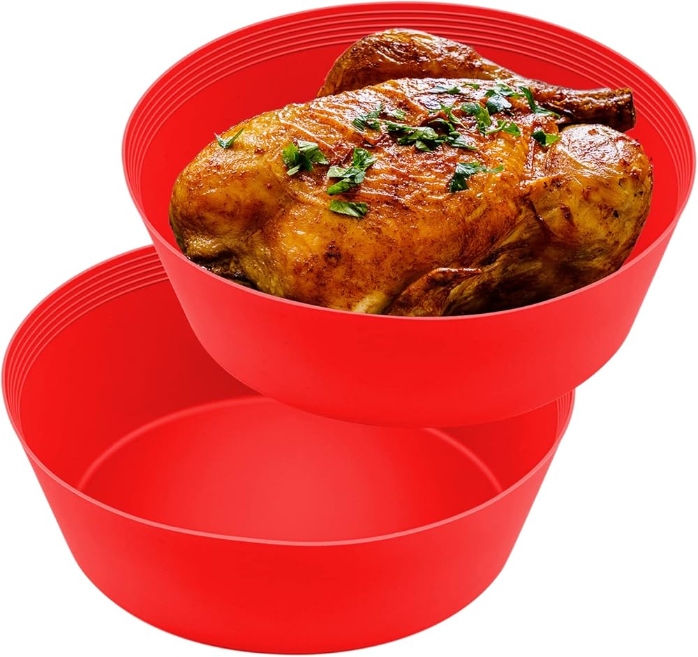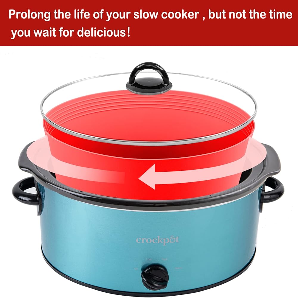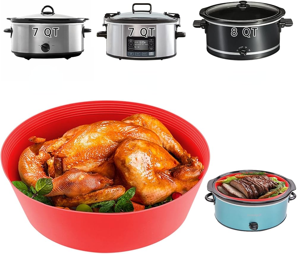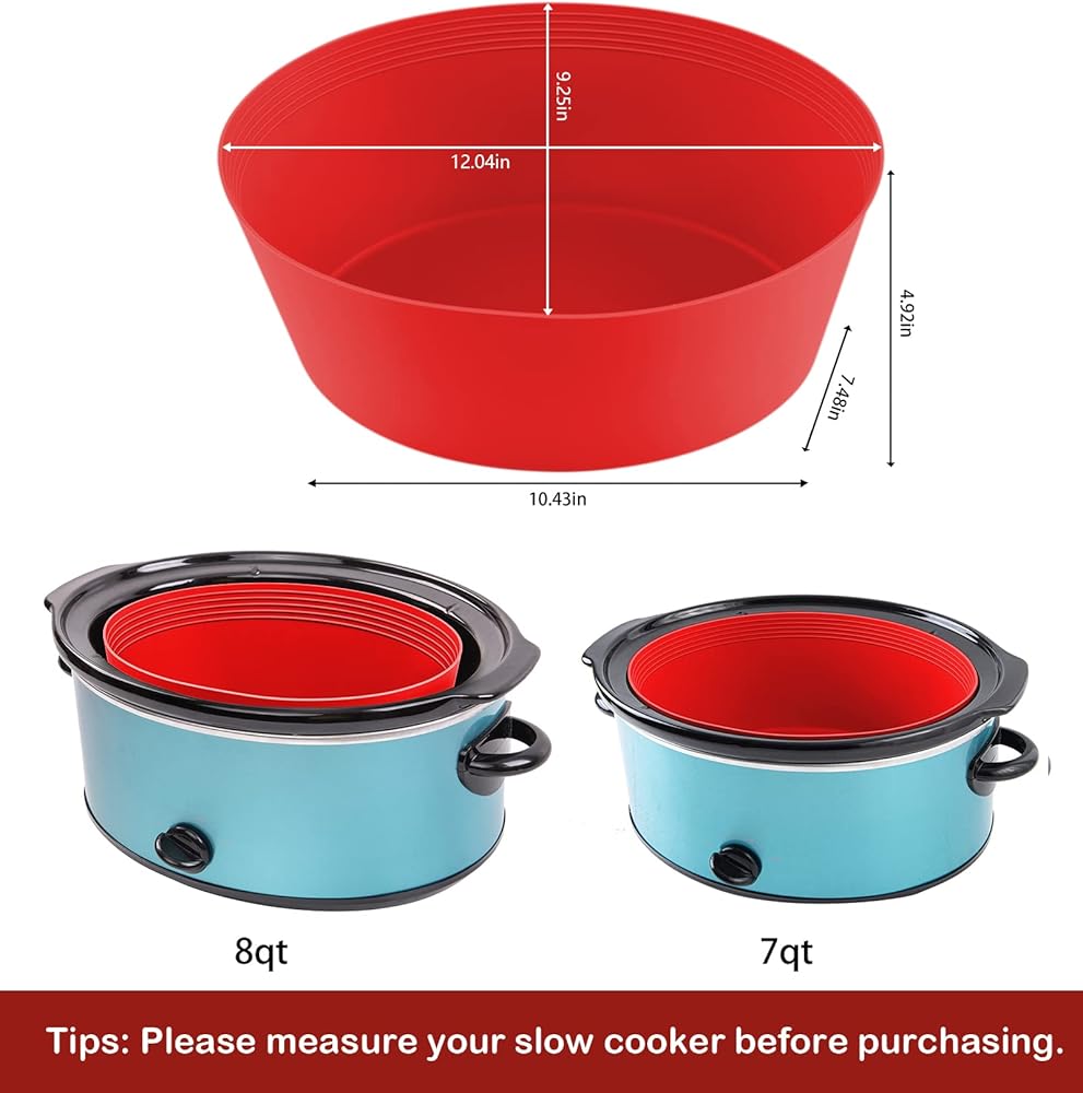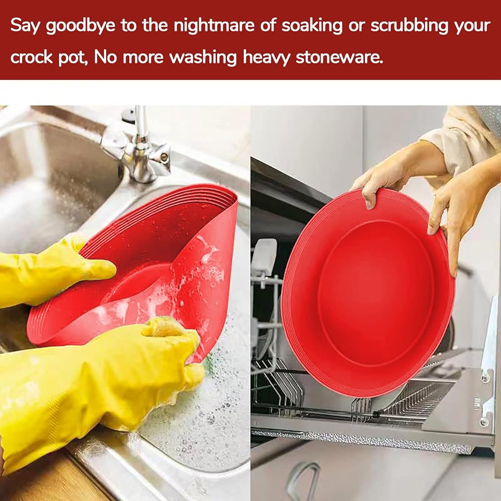 بطانات الطبخ البطيئة تناسب وعاء الفخار من 7 إلى 8 كيو تي، بطانات/أكياس كبيرة الحجم قابلة لإعادة الاستخدام، آمنة للاستخدام في غسالة الأطباق، صواني الطبخ المصنوعة من السيليكون خالية من مادة BPA (قطعتان - أحمر)
