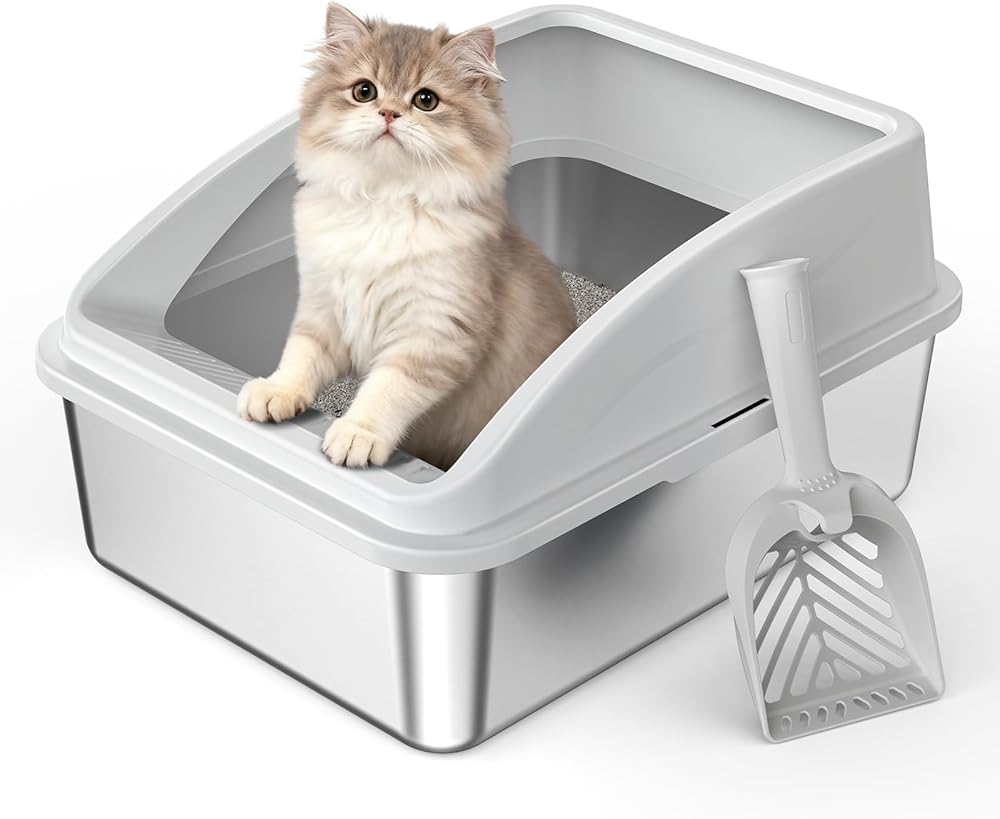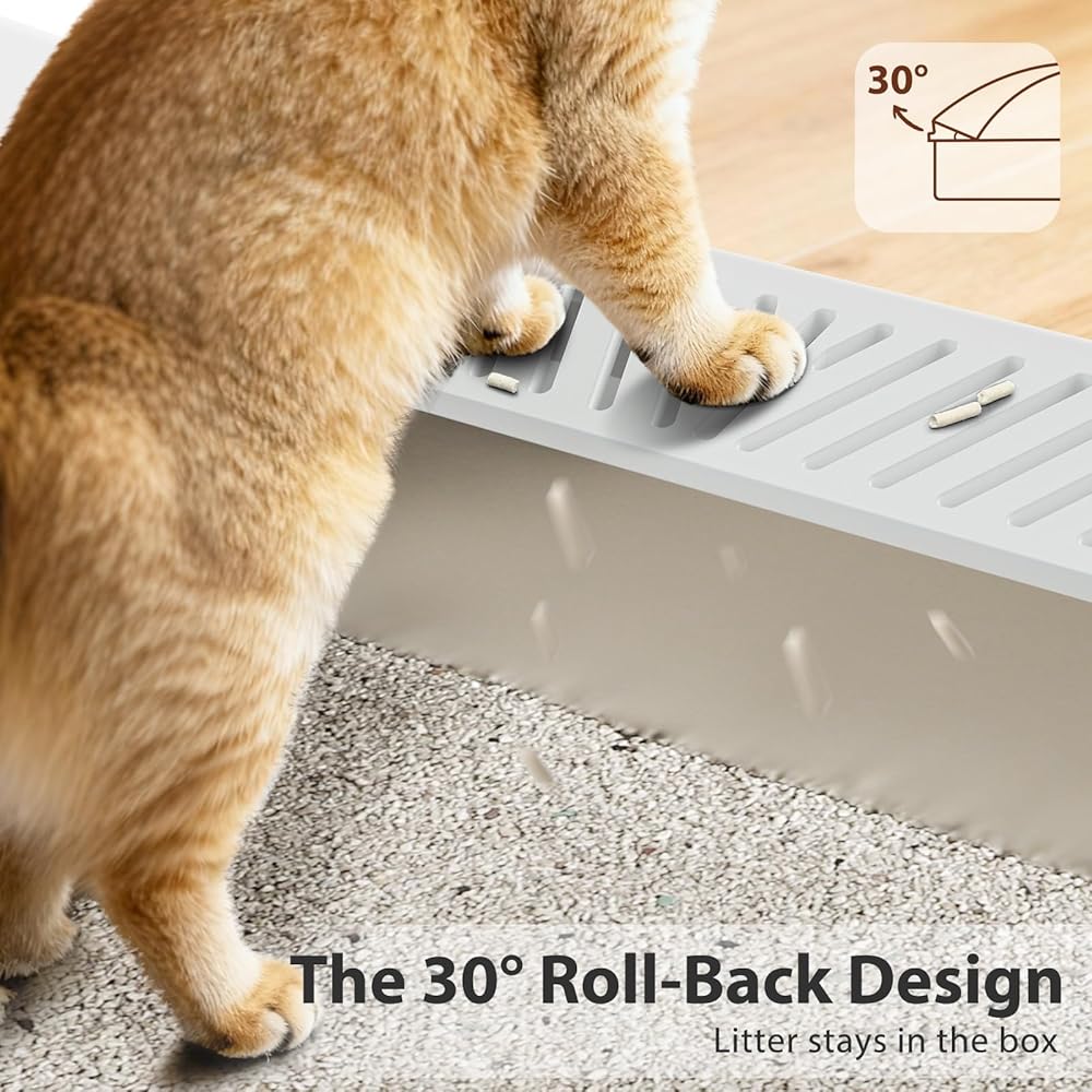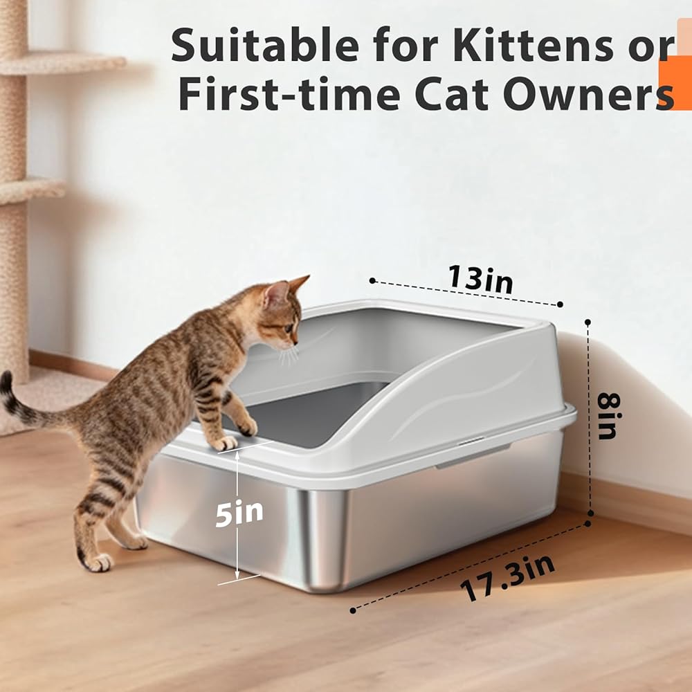 مقاس XL: صندوق فضلات القطط المصنوع من الفولاذ المقاوم للصدأ كبير جدًا، بقياس 23.2 × 15.7 × 12.2 بوصة. وهو مناسب للقطط بجميع أحجامها، بما في ذلك السلالات الكبيرة والعملاقة. الجوانب العالية تمنع انسكاب الفضلات، مما يجعل من السهل تنظيفها وصيانتها.