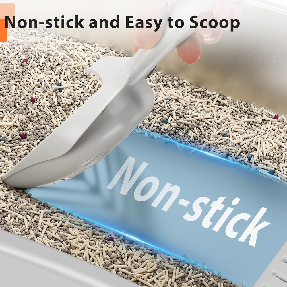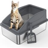 مزيج مثالي: يأتي صندوق فضلات القطط المصنوع من الفولاذ المقاوم للصدأ مع بساط فضلات القطط، والذي يوفر سطحًا مريحًا لتطأ عليه قططك. كما أنها تشتمل على مغرفة فضلات معدنية بالكامل، مما يجعل من السهل تنظيف صندوق الفضلات جيدًا.
