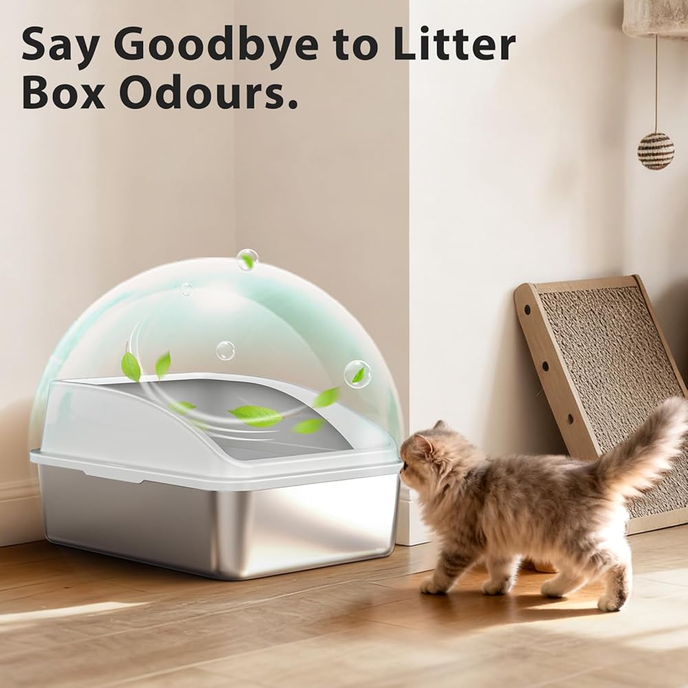 مانع لتسرب البول: تم تصميم صندوق فضلات القطط بتصميم مانع للتسرب، بما في ذلك قاعدة محكمة الغلق وشكل منحني. إغلاق فائق - يضمن احتواء السوائل داخل صندوق فضلات القطط المصنوع من الفولاذ المقاوم للصدأ، ويحافظ على منزلك نظيفًا وخاليًا من الروائح.