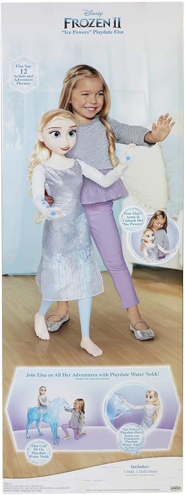 • خفيفة الوزن، مع 11 نقطة مفصلية، يمكن لـ Ice Powers Playdate Elsa بحجم الأطفال الجلوس على رفيقها الموثوق به، Disney's Frozen 2 Playdate Water Nokk (تباع بشكل منفصل)، يمكن لـ Ice Powers Playdate Elsa أيضًا تحويل Playdate Water Nokk من خلال لمستها.