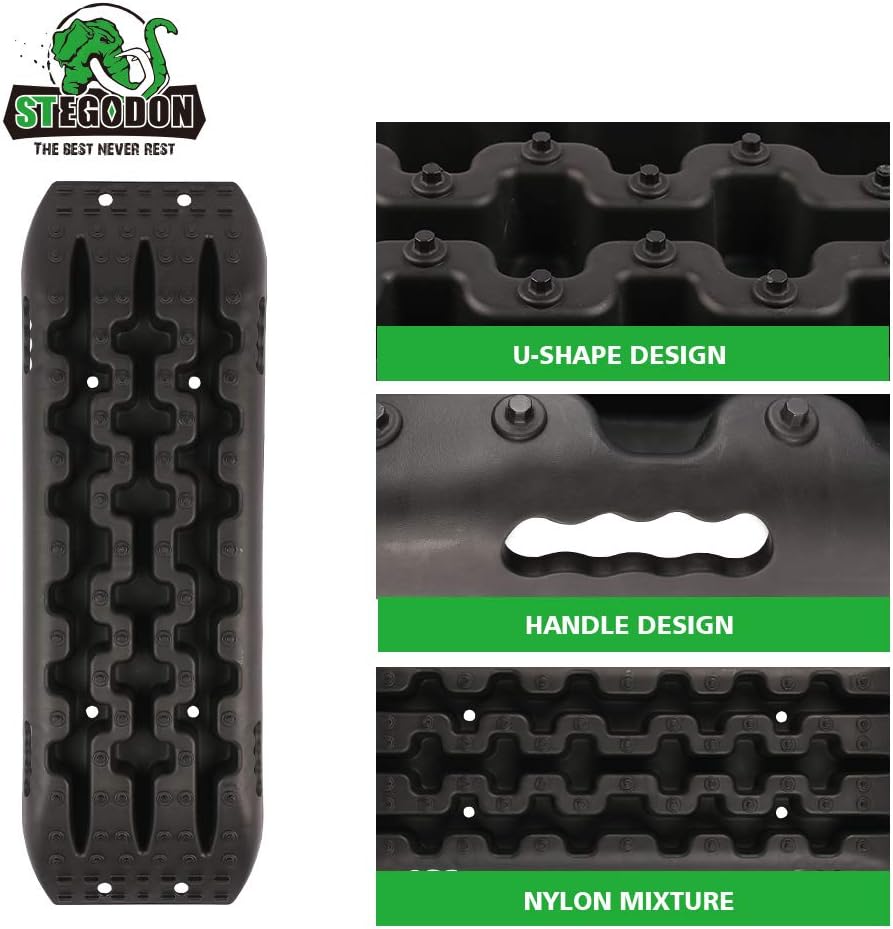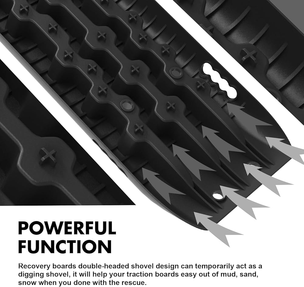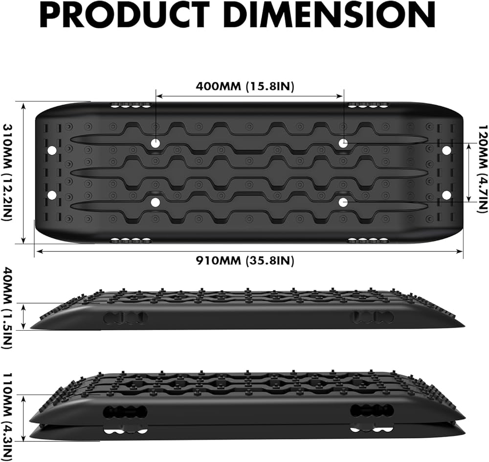 أبعاد العلامة التجارية الجديدة: 36.2 × 12.2 × 2.4 (بوصة)، الوزن: 10.36 رطل. لكل زوج. مادة النايلون القوية المعززة، سعة تحميل 10 طن على الأرض المسطحة. تم تقليل الحجم ولكنه لا يؤثر على قدرة التحمل، سيكون هذا أفضل شريك لك في سيارات الدفع الرباعي.