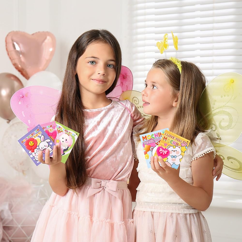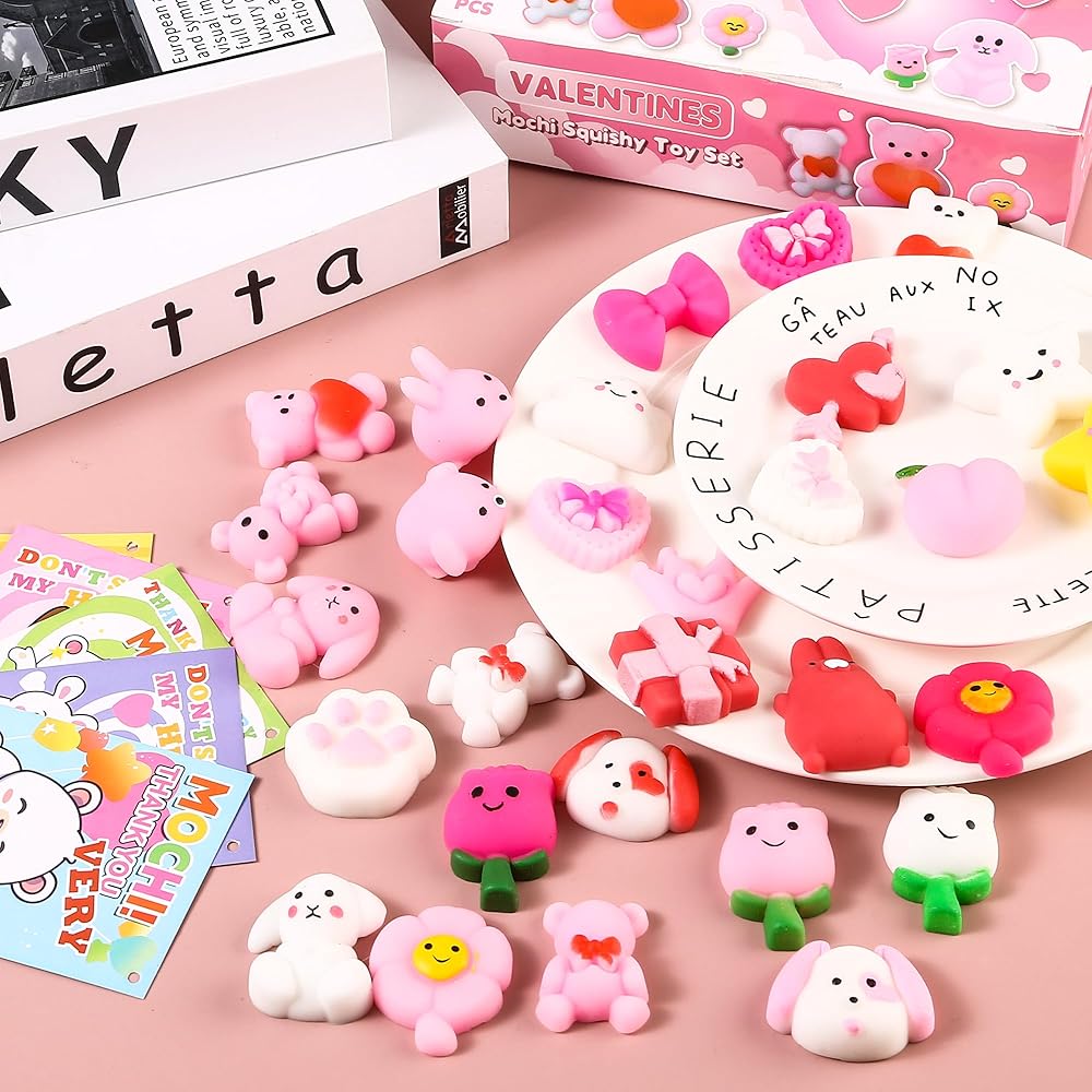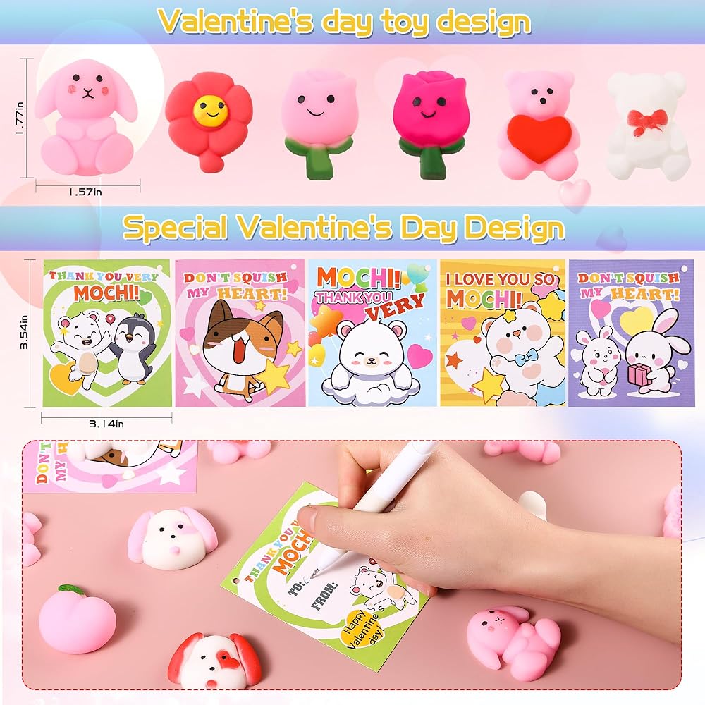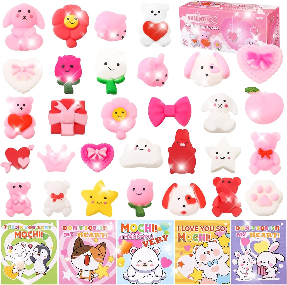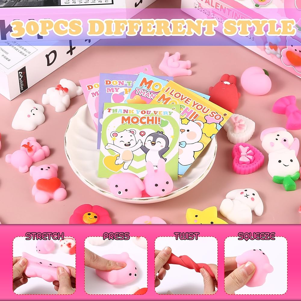 30 حزمة هدية عيد الحب للأطفال موتشي سكويشي مع بطاقات عيد الحب، حفلة عيد الحب في الفصل المدرسي، هدية لطيفة صغيرة لتبادل الهدايا للأولاد والبنات