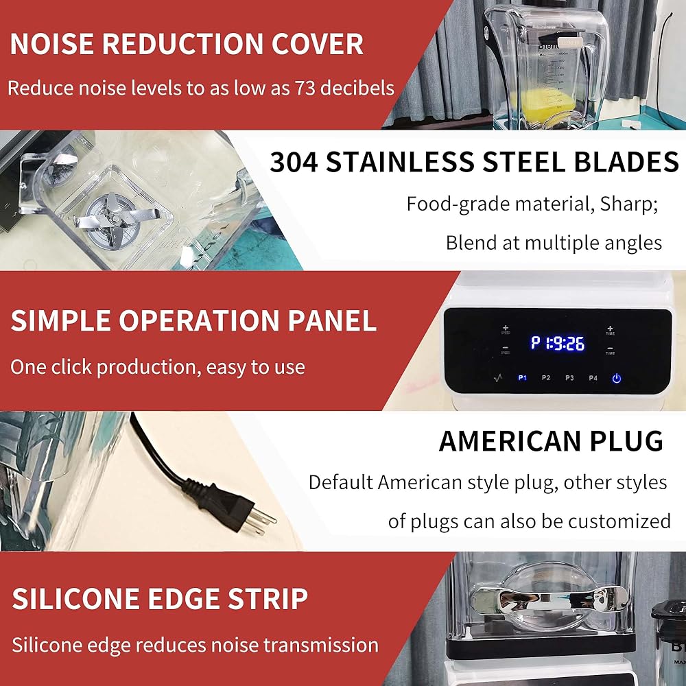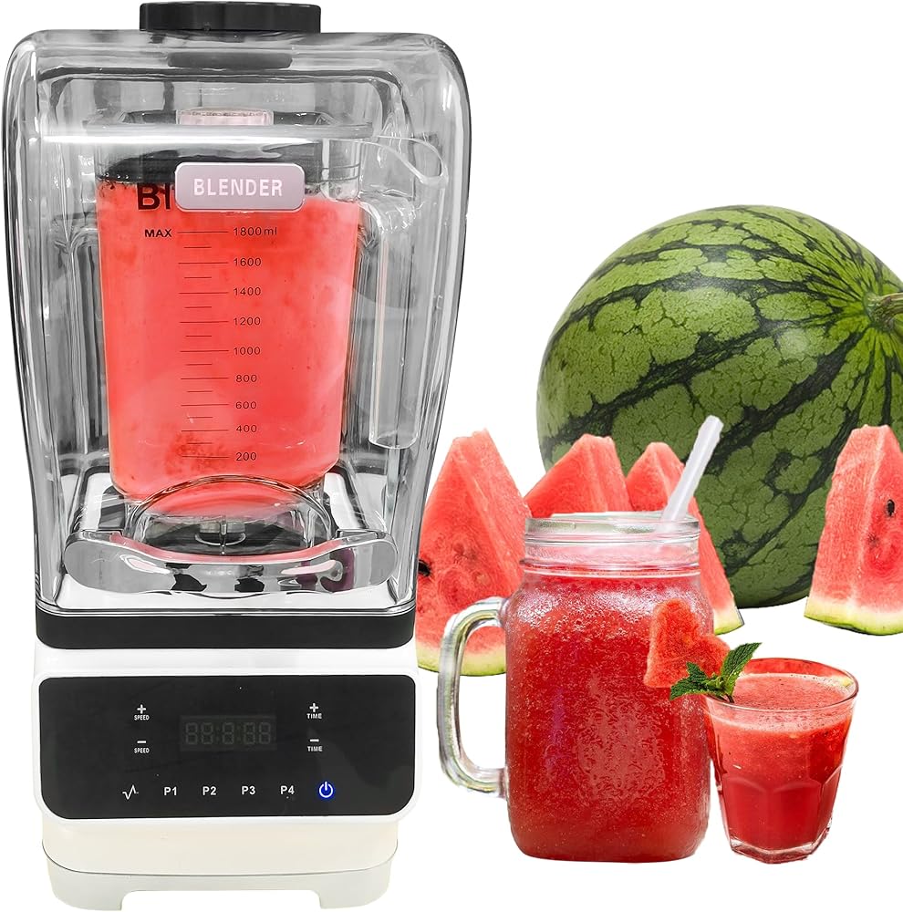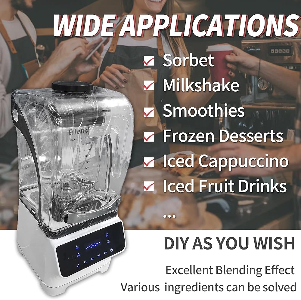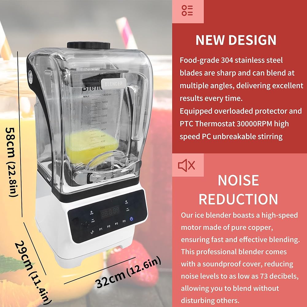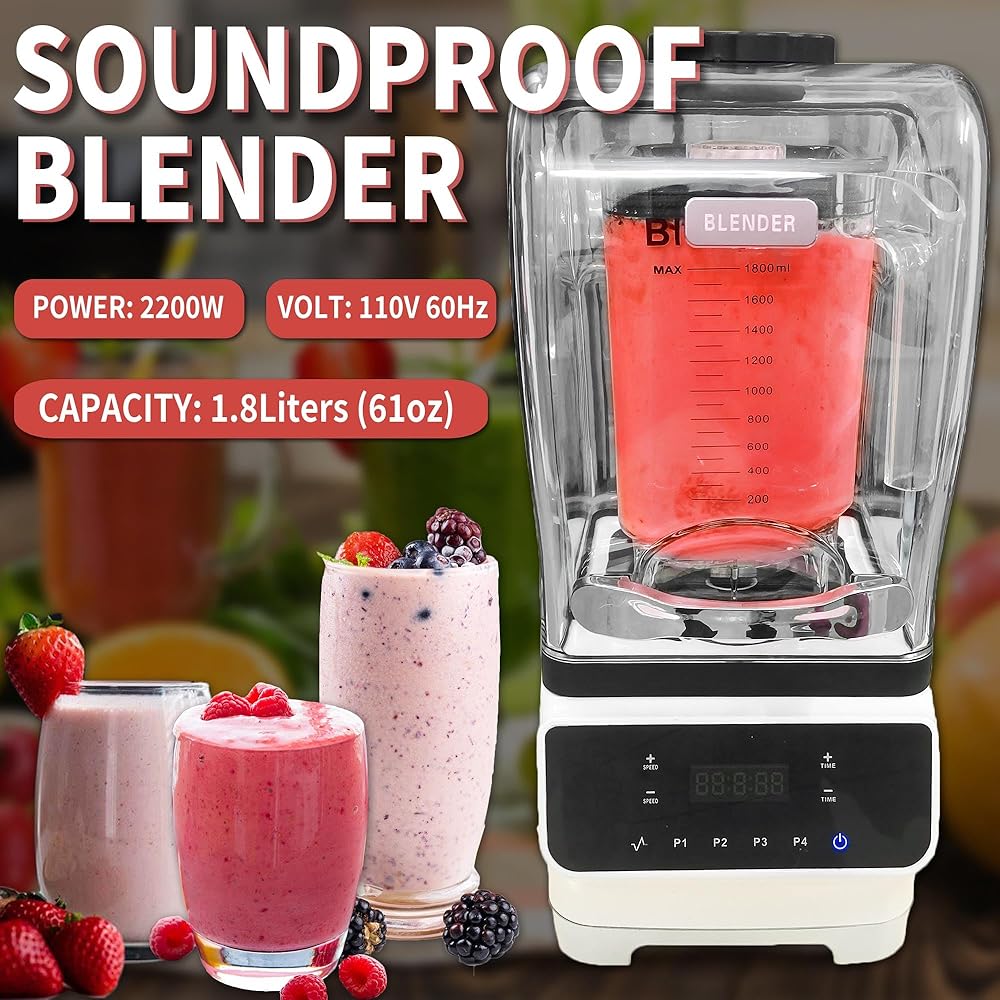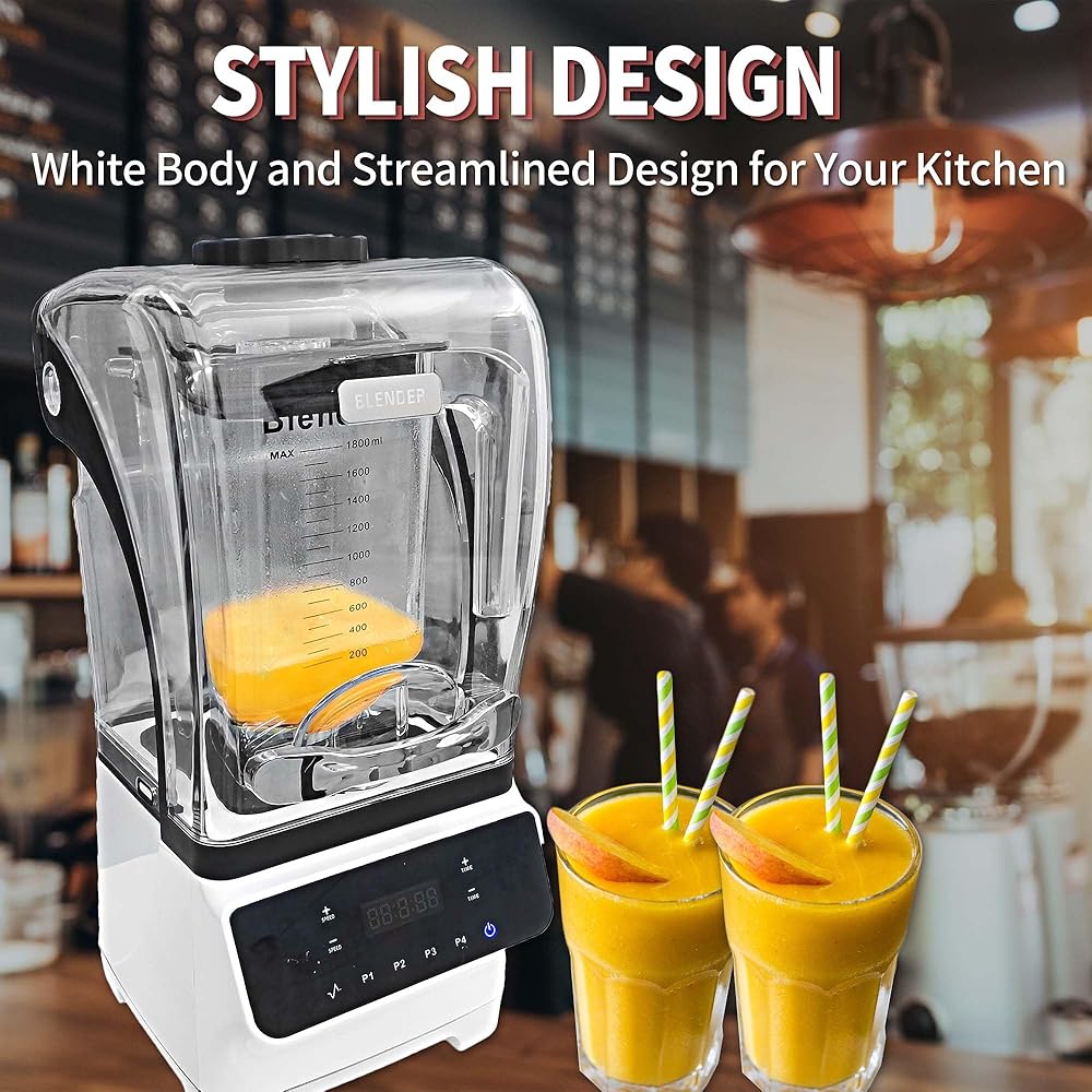 خلاط تجاري Yovtekc للمخفوقات والعصائر، 1.8 لتر (61 أونصة) خلاط احترافي عالي السرعة للمطبخ، خلاط على سطح الطاولة مع درع صوت لعصائر الفاكهة المجمدة، 2200 وات 110 فولت أبيض