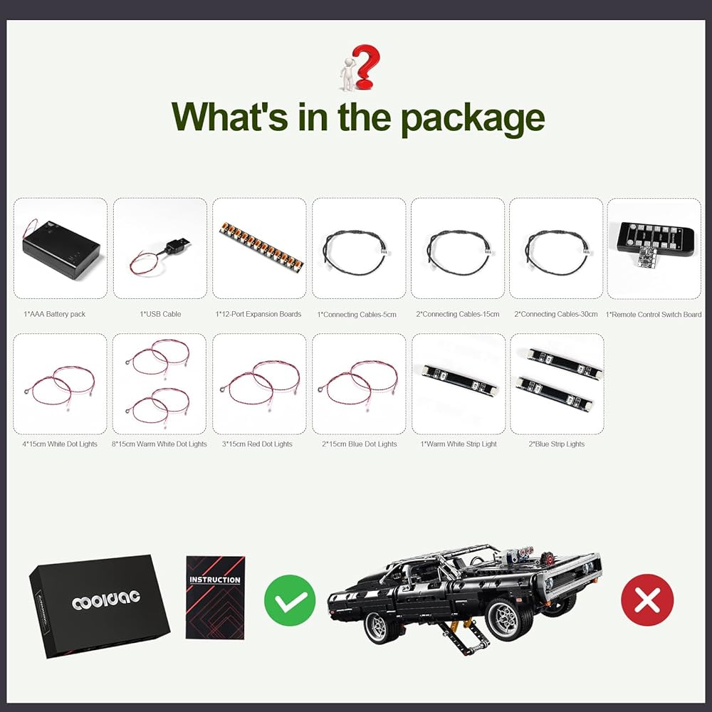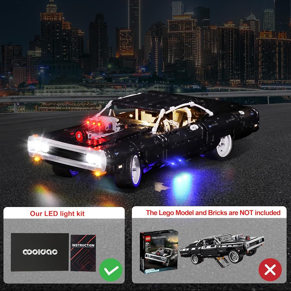 🌠 مجموعة الإضاءة🌠 مجموعة مصابيح LED الخاصة بنا متوافقة خصيصًا مع نموذج مكعبات بناء دودج تشارجر من تكنيك فاست آند فيوريوس دوم.