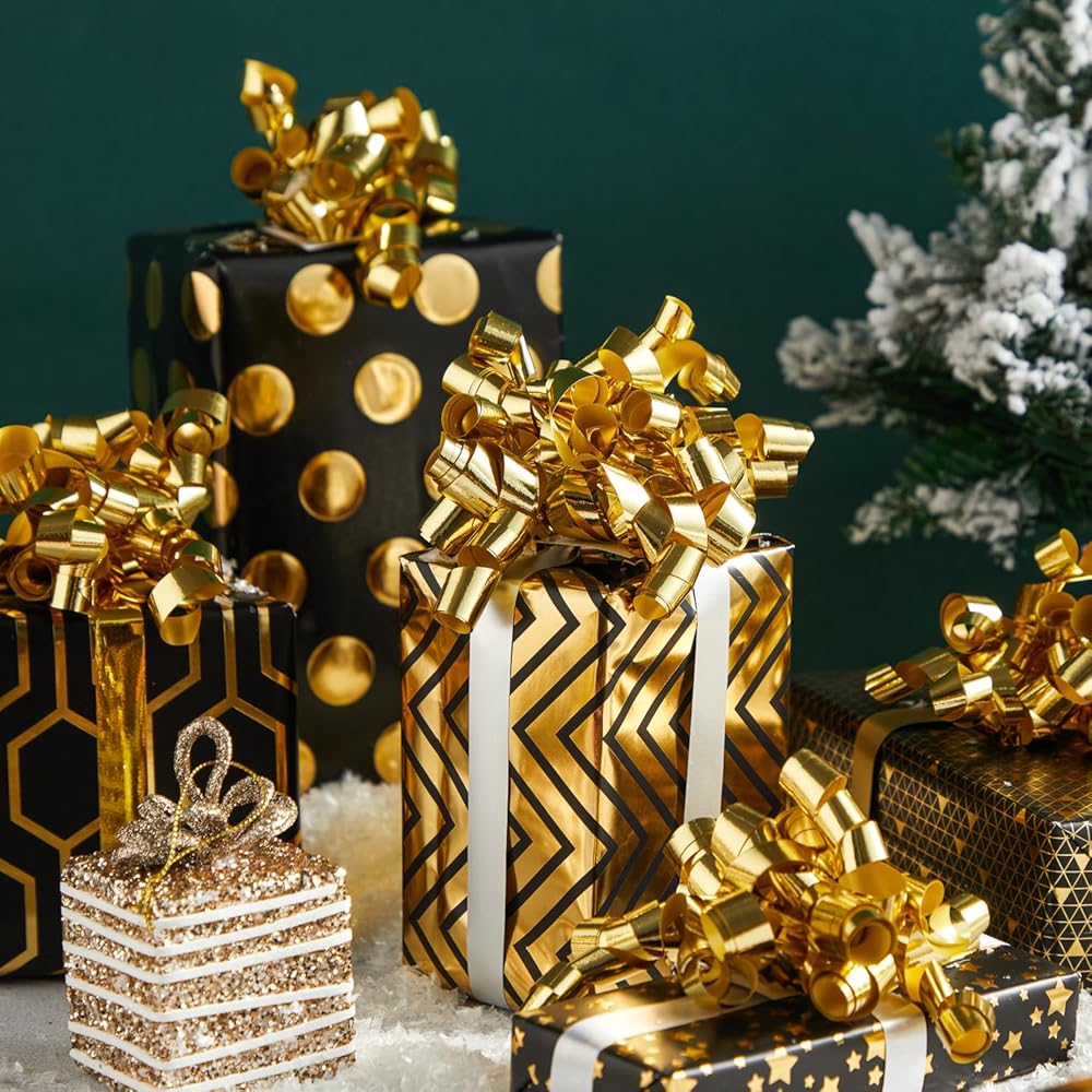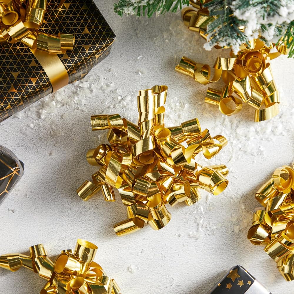 14 قطعة من الأقواس المجعدة لتغليف الهدايا، أقواس تغليف الهدايا ذاتية اللصق لعرض هدايا عيد الميلاد (ذهبي)