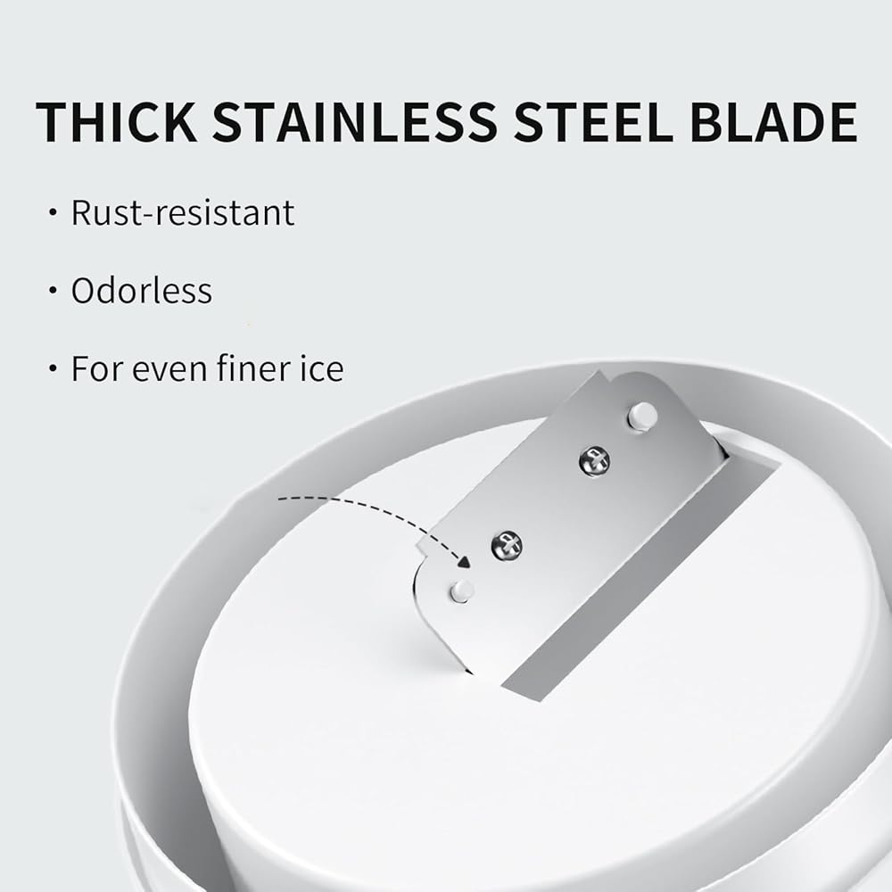 شفرة من الفولاذ المقاوم للصدأ 18/8: ماكينة حلاقة الثلج الخاصة بنا مجهزة بشفرة متينة وحادة، مما يسمح بحلاقة ثلج موحدة وبدون مجهود، مما يجعل الحلاقة الخاصة بك أسهل بكثير.