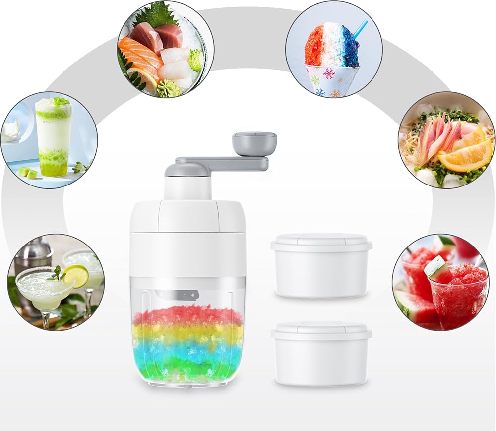 التشغيل اليدوي: لا حاجة للكهرباء أو البطاريات. ما عليك سوى استخدام المقبض الممتد والمريح لتشغيل آلة مخروط الثلج بسلاسة ودون عناء.