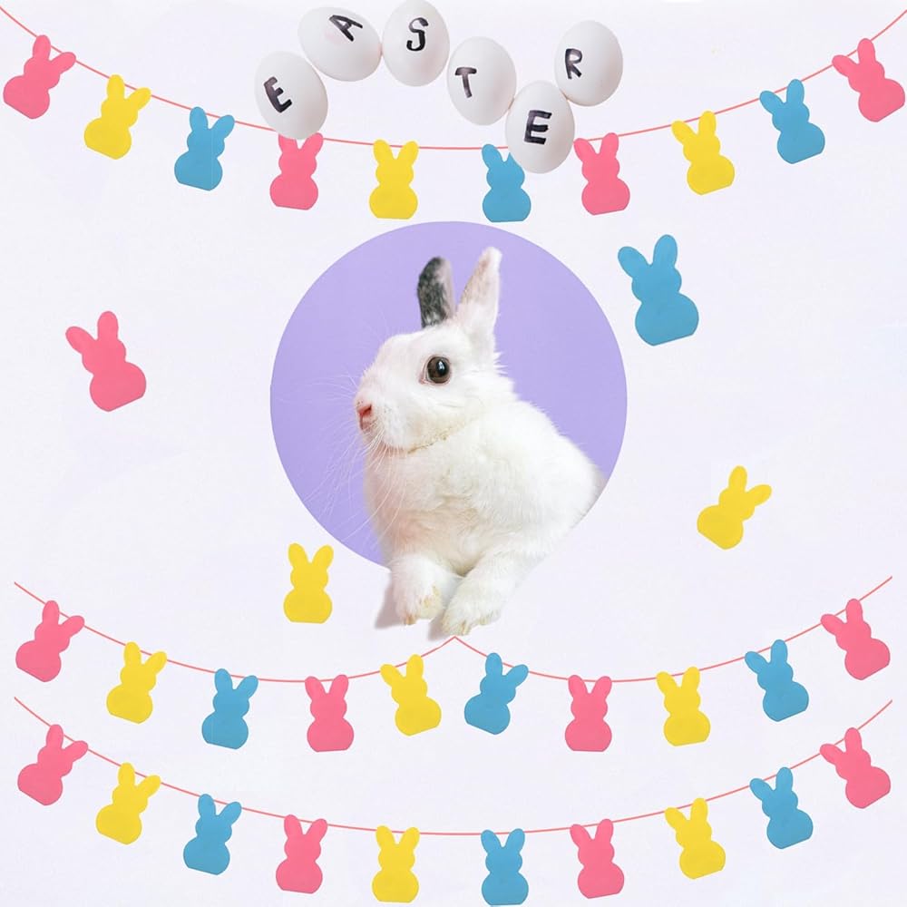 تصميم مبتكر: تضيف الأرانب الوردية والأصفر والأزرق، إلى جانب البرسيم ذو الأوراق الأربعة باللون الأخضر الفاتح والأخضر الداكن، لمسة احتفالية إلى ديكوراتنا الداخلية والخارجية.