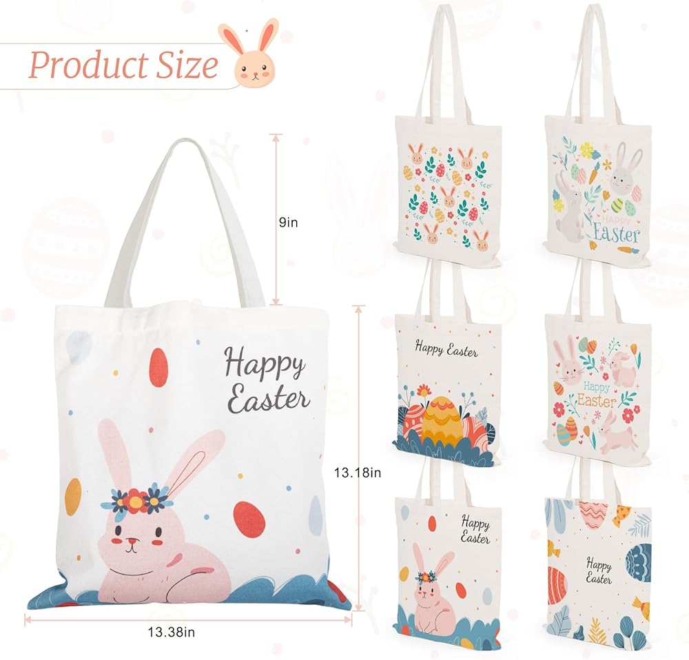 حقائب عيد الفصح للأطفال: تأتي حقائب حفلات عيد الفصح بثلاثة أنماط أصلية مختلفة لعيد الفصح. هناك الأرانب والبيض وعناصر عيد الفصح الأخرى. الألوان الزاهية والأنماط التي تحمل طابع عيد الفصح تجعلها لافتة للنظر ومثالية لألعاب البيض وحقائب الهدايا وحاويات البيض، رقيقة بما يكفي لصنع حقائب هدايا سيحبها الفتيات والأولاد الصغار، أو ديكورات جميلة لحفلة بطابع عيد الفصح.