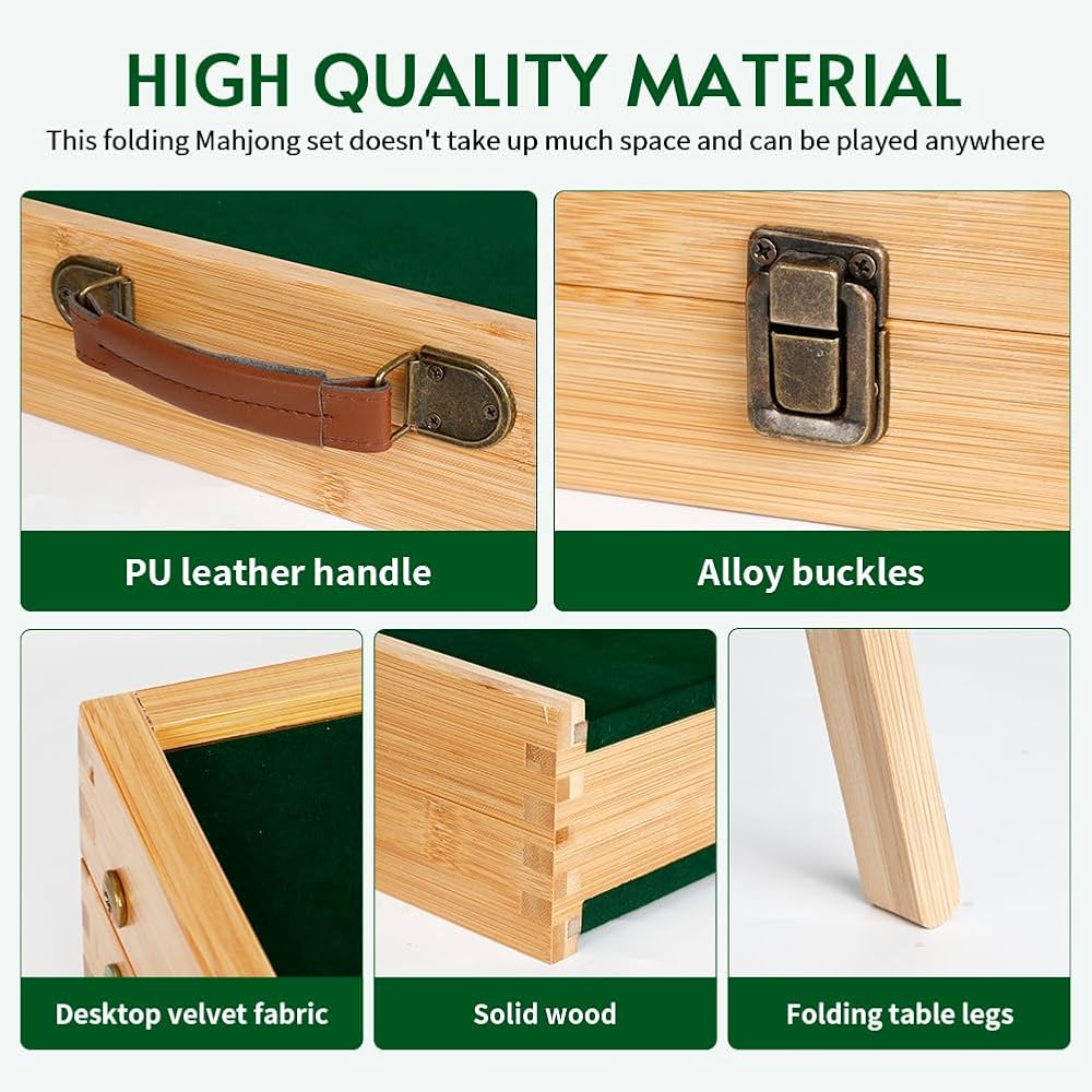 طاولة ماجونج متعددة الأغراض - بفضل سطحها المستوي، تعد هذه الطاولة القابلة للطي متعددة الوظائف خيارًا مثاليًا لأنواع مختلفة من ألعاب الطاولة، مثل ماجونج، والبوكر، ولعبة الدومينو، وبلاك جاك، وتكساس هولد إم، والمزيد.