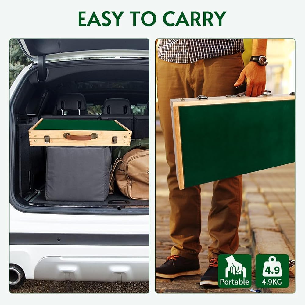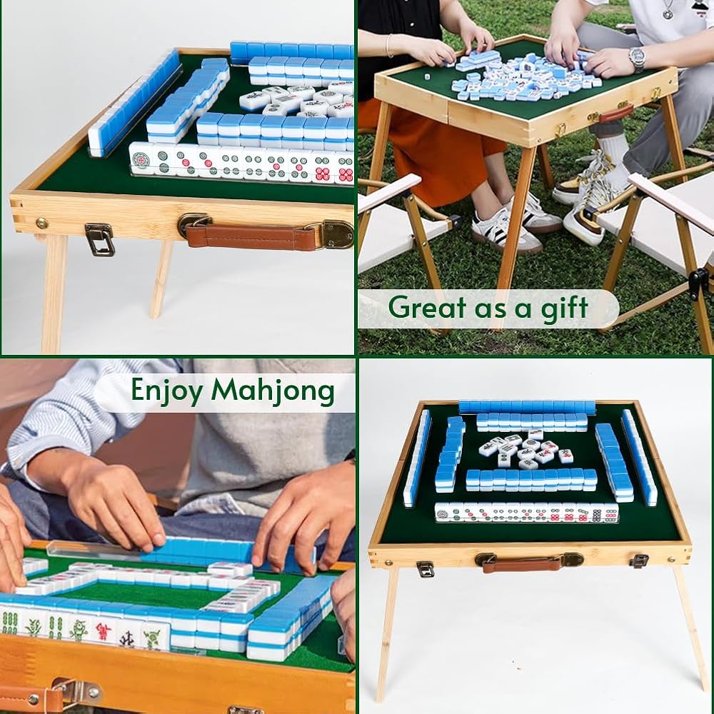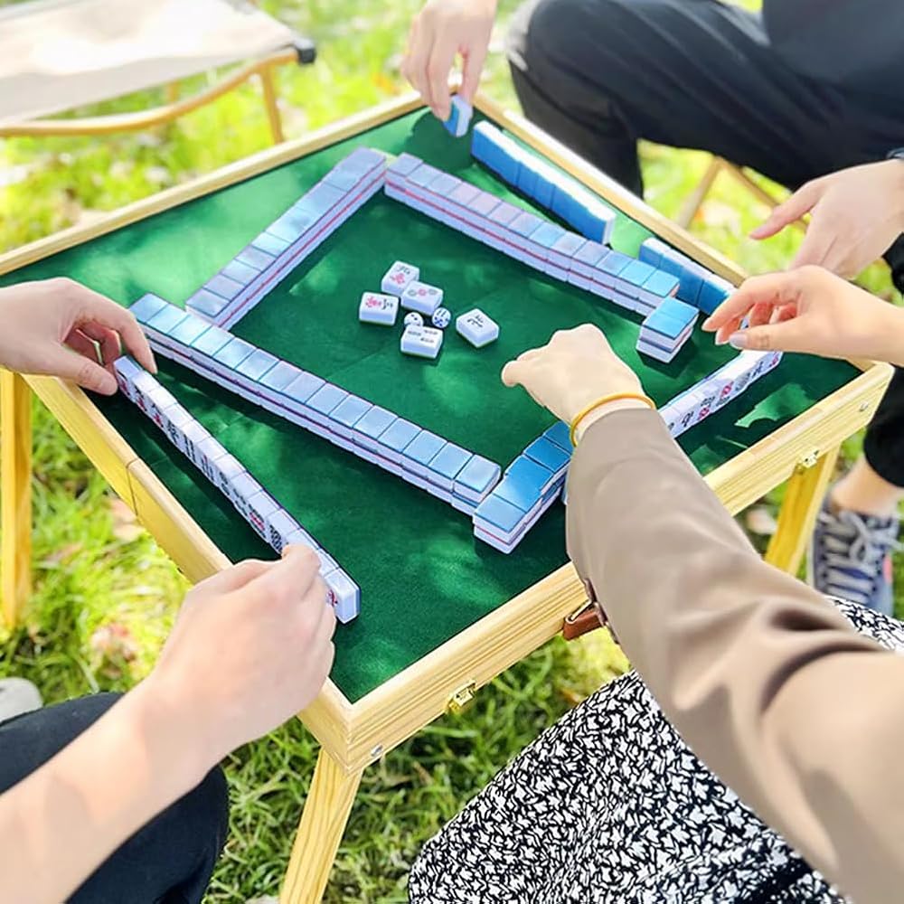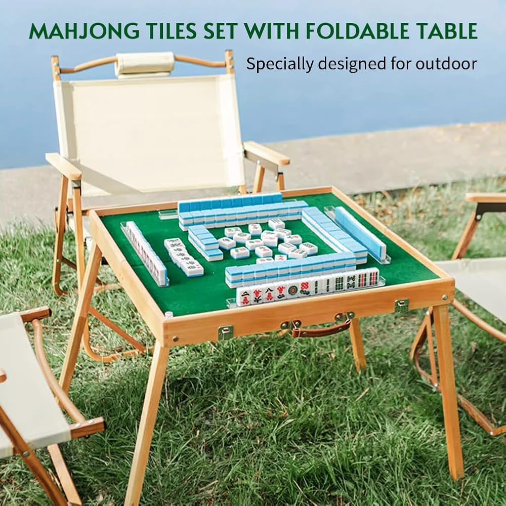 قابلة للطي والحمل - جيدة للتخييم في الهواء الطلق والنزهات والتجمعات والترفيه. لعبة طاولة مناسبة لعدد 2-4 من أفراد العائلة أو الأصدقاء للعب معًا. ما عليك سوى التقاط هذه الحقيبة ويمكنك أخذ مجموعة كاملة من بلاطات mahjong في أي مكان.