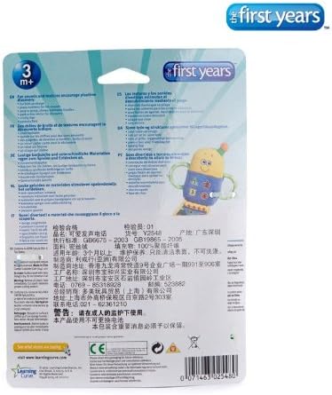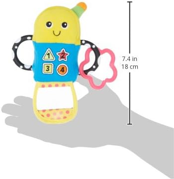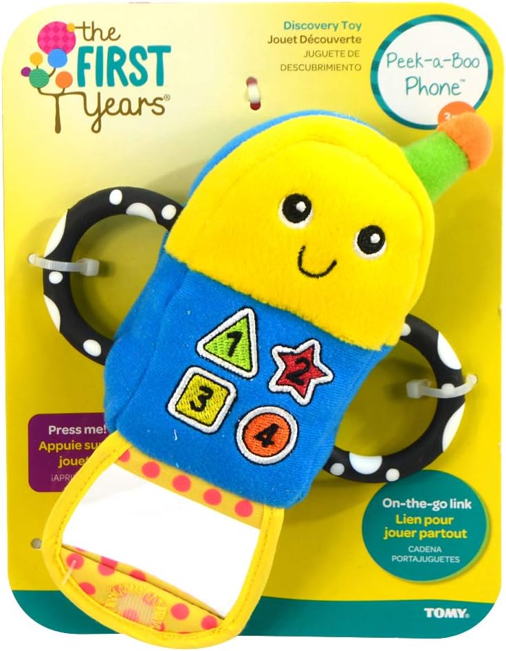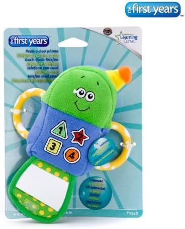 3 months & up. Babies love playing with things that parents use everyday, the telephone being one of their favorites. Now, they can have their own contemporary-styled flip phone with the added fun of electronic sounds, a peek-a-boo mirror, crinkly flap and multiple textures for teething. Plus, it has chewy teeth able handles for easy grasping. Surface clean.