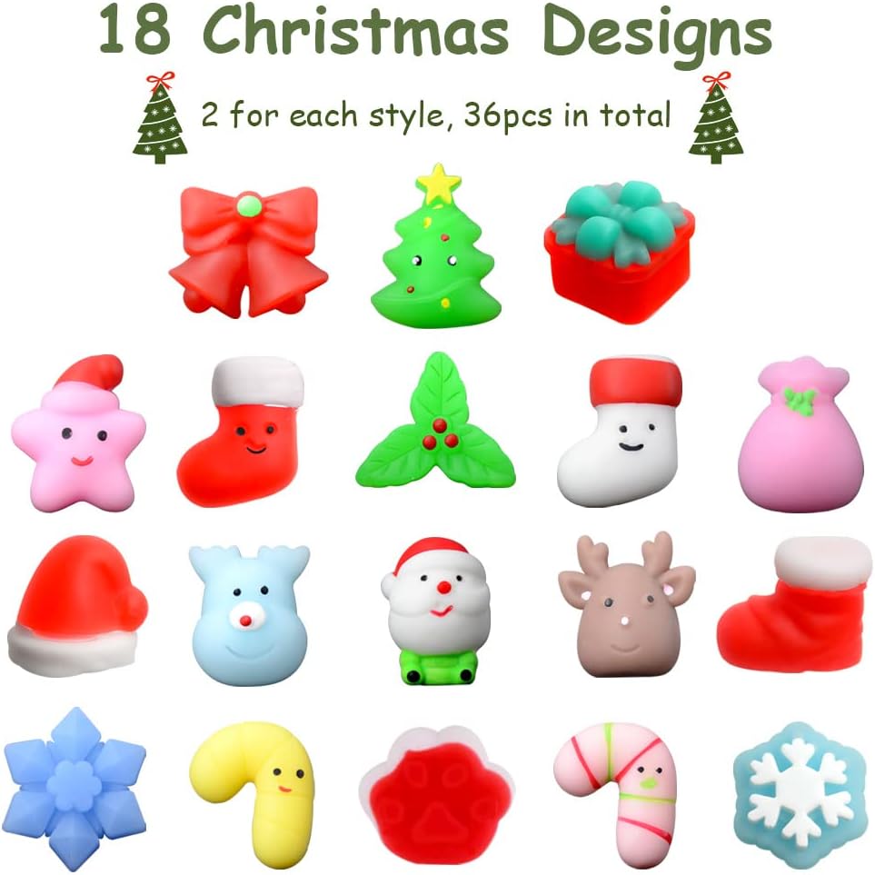 【عبوة قيمة للغاية】: 36 قطعة من إسفنجات كاواي لعيد الميلاد، ألعاب إسفنجية لحفلات الأطفال، ألعاب صغيرة لتخفيف التوتر من أجل هدايا حفلات الكريسماس، هدايا الكريسماس، هدية عيد الميلاد، جائزة الفصل الدراسي، حشوات جوارب الكريسماس.
