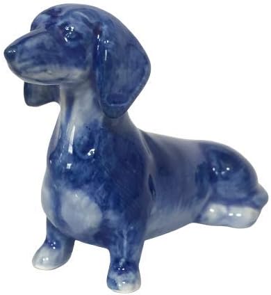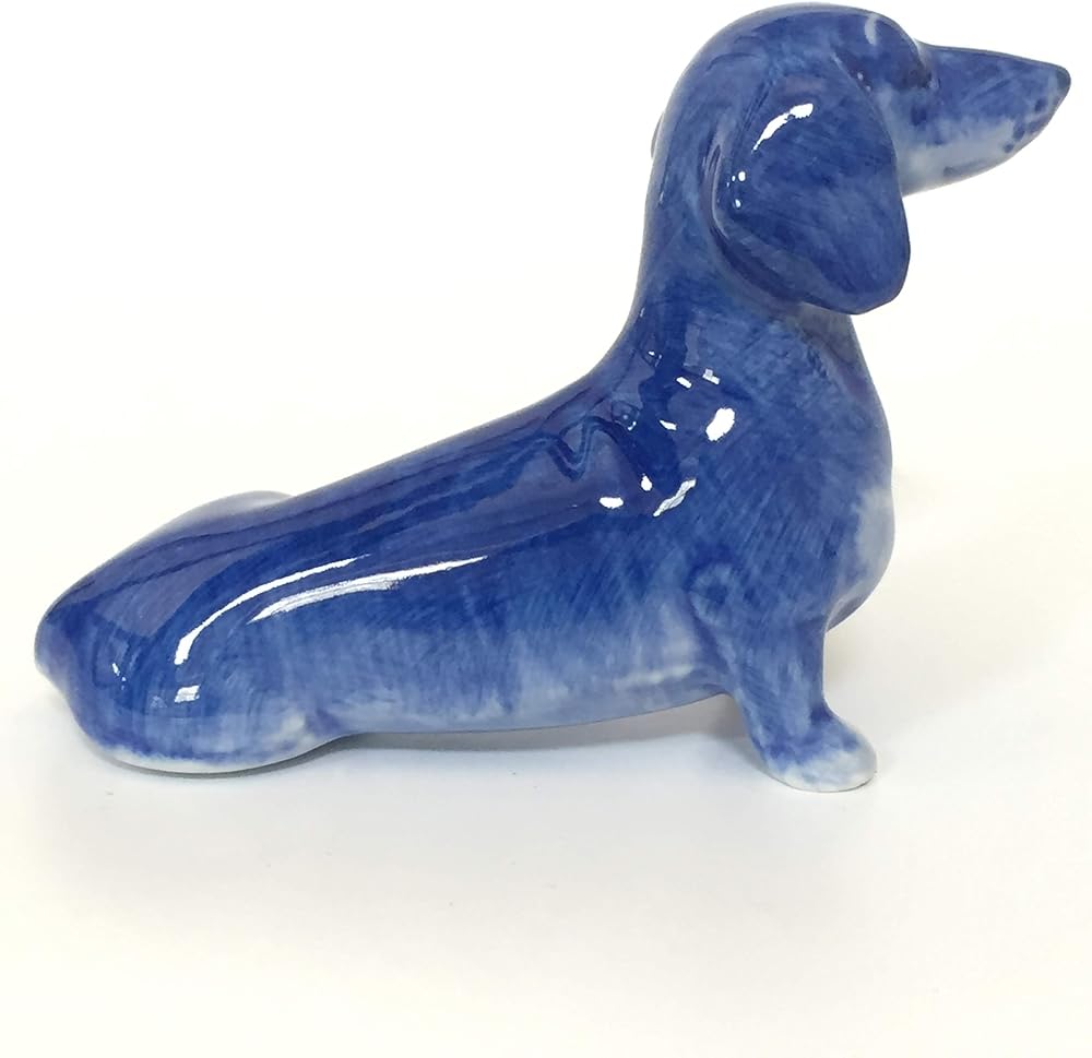- figurine delft blue dog dachshund collectible blue white animal pet garden bonsai