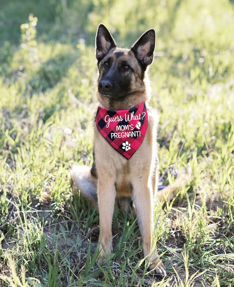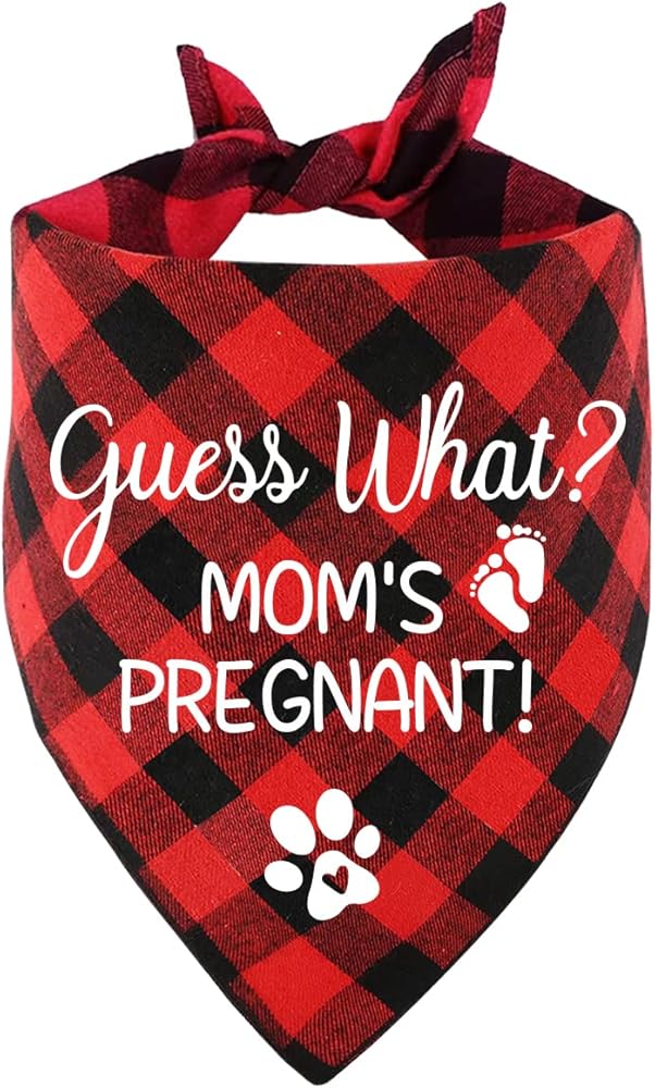 NTKIO مضحك الأحمر منقوشة القطن كلب الحمل الإعلان باندانا، تخمين ما أمي حامل، الجنس تكشف الصورة الدعامة وشاح للحيوانات الأليفة الكلب عشاق مالك هدية