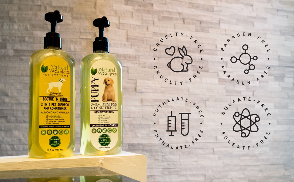 حل صديق للحساسية - يعتبر كل من الفانيليا واللوز من المكونات المضادة للحساسية، مما يجعلها آمنة لمعظم الكلاب والجراء ذوي البشرة الحساسة أو الحساسية. الشامبو والبلسم الخاص بنا خاليان من المواد الكيميائية القاسية والمهيجات، مما يضمن تجربة تنظيف لطيفة لا تسبب الحساسية.