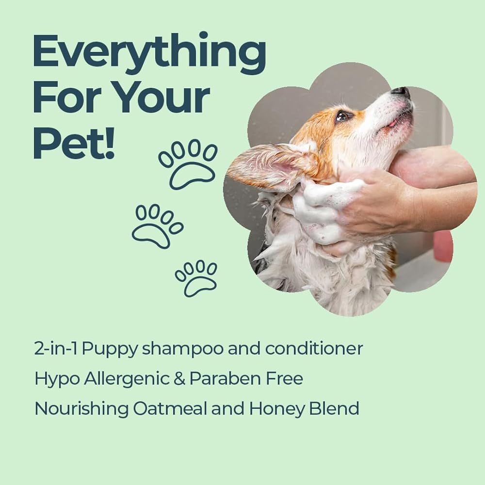 تقليل التساقط والتشابك - تساعد الخصائص المغذية لللوز والفانيليا على تقليل التساقط والتشابك، مما يجعل جلسات التصفيف أمرًا سهلاً ويحافظ على مظهر فراء الجرو جميلًا.