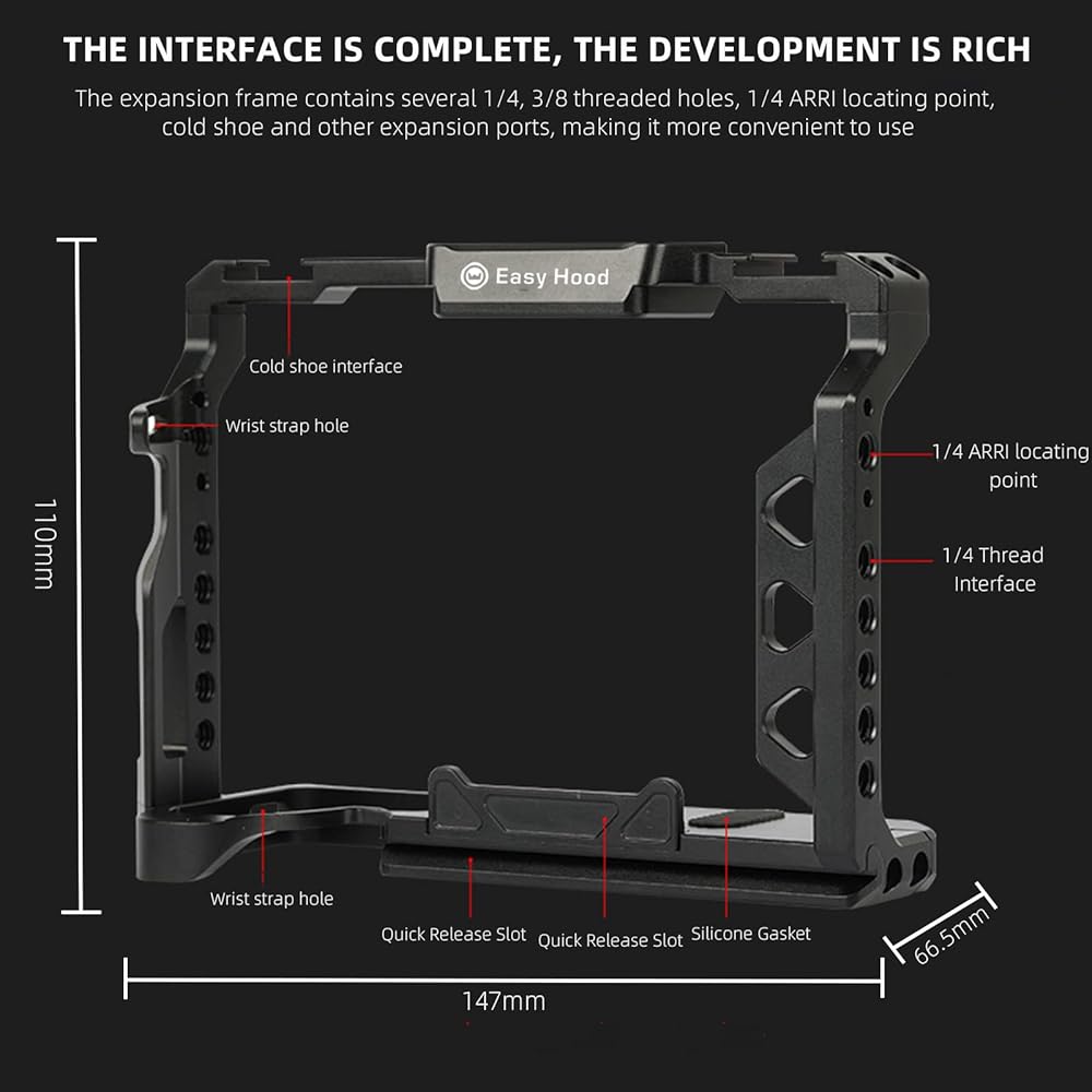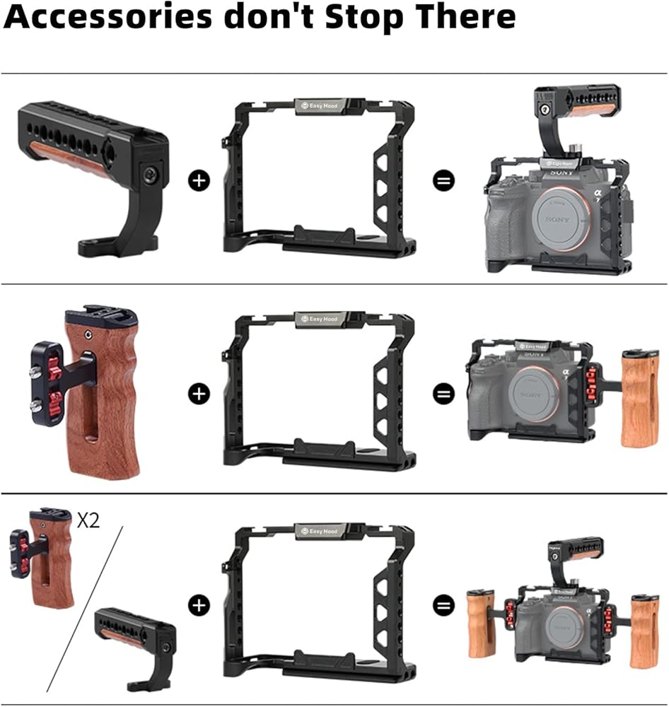 Creative with a number of 1/4 and 3/8 threaded interface around the cage, you can mix and match any composition kit shooting