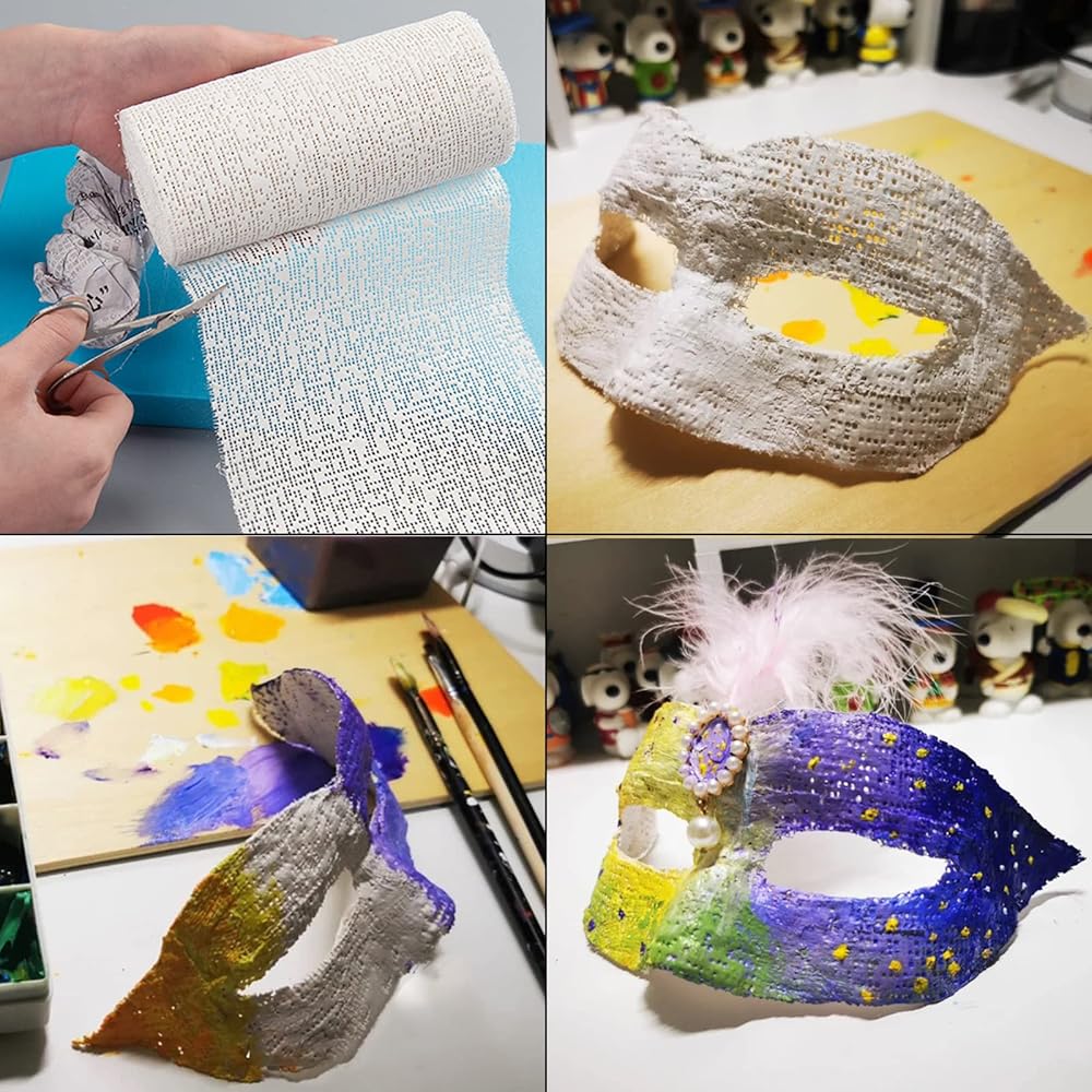 Plaster gauze bandage for hobby craft is coated with plaster of paris, a staple material in the art of casting and mold making. Once activated with water, plaster sets in just 5 minutes. Useful for a variety of applications: body casting, face casting, mask making, casting forms, sculpture/modeling, mold making, and so on.