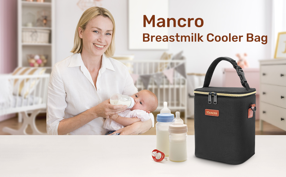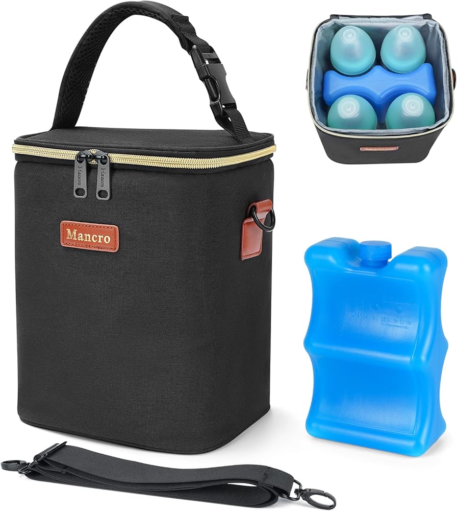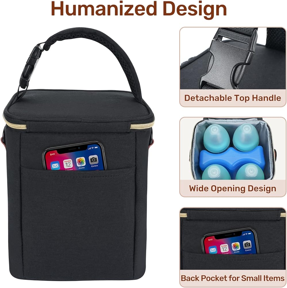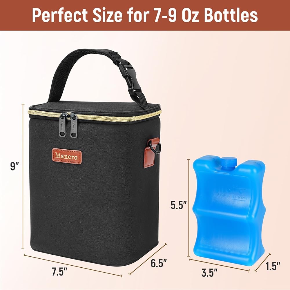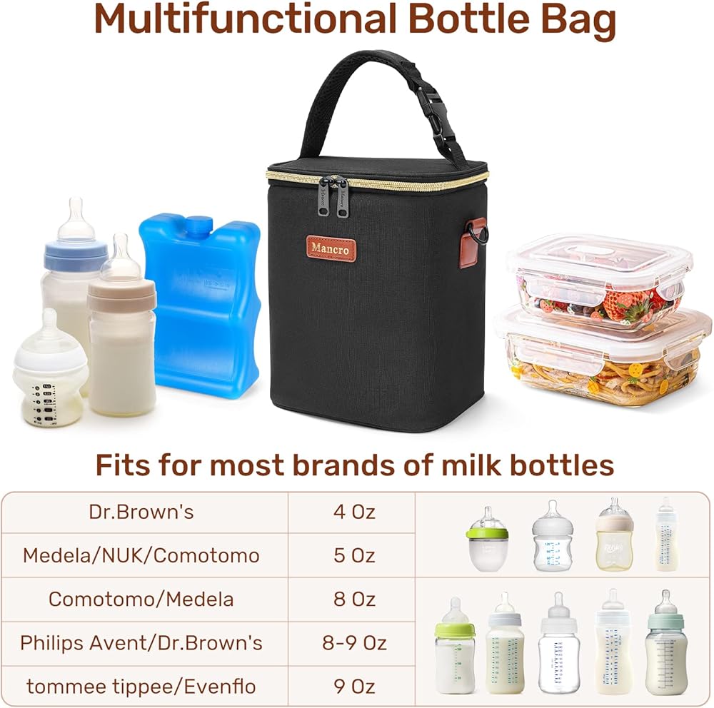 حقيبة تبريد حليب الثدي من مانكرو مع علبة ثلج، حقيبة زجاجات الأطفال تناسب 4 زجاجات أطفال يصل وزنها إلى 9 أونصة، حقيبة تبريد حليب الثدي للسفر أثناء السفر للأمهات المرضعات، باللون الأسود